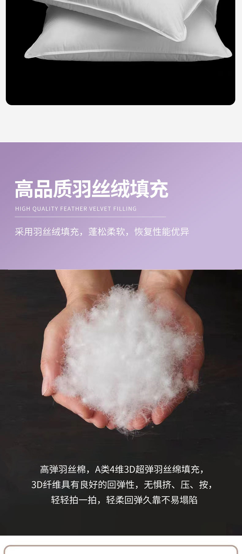5성급 호텔 깃털솜 베개, 순면 베개심, 부드럽고 편안한 목 보호 수면 베개, 제조업체 도매, 품질 보증스토어 가기