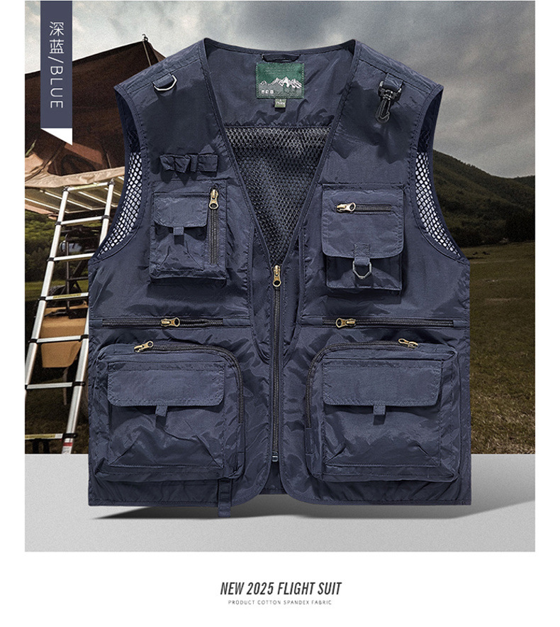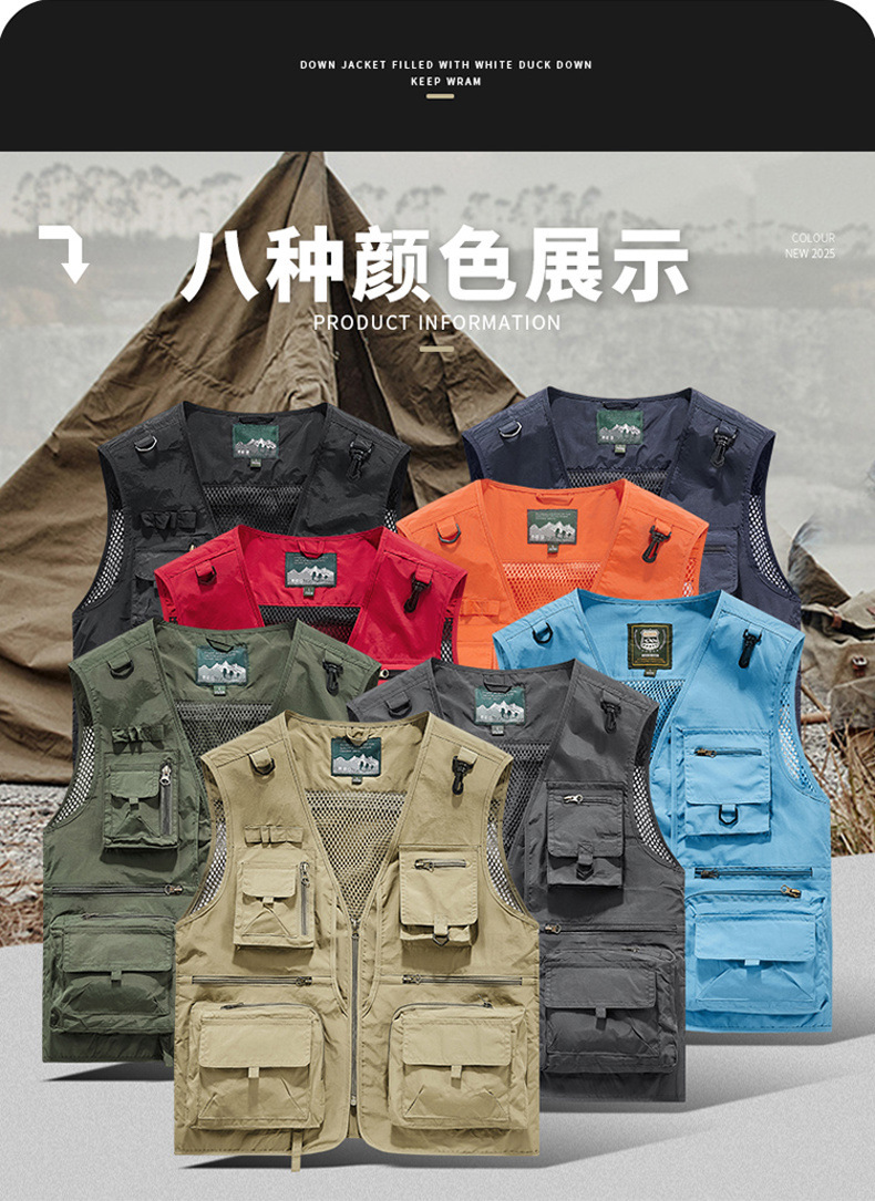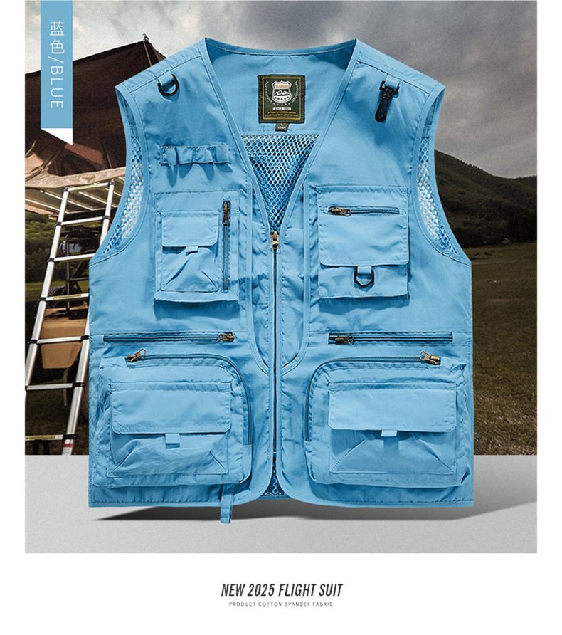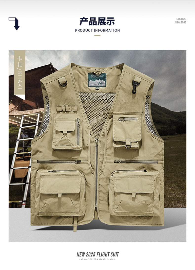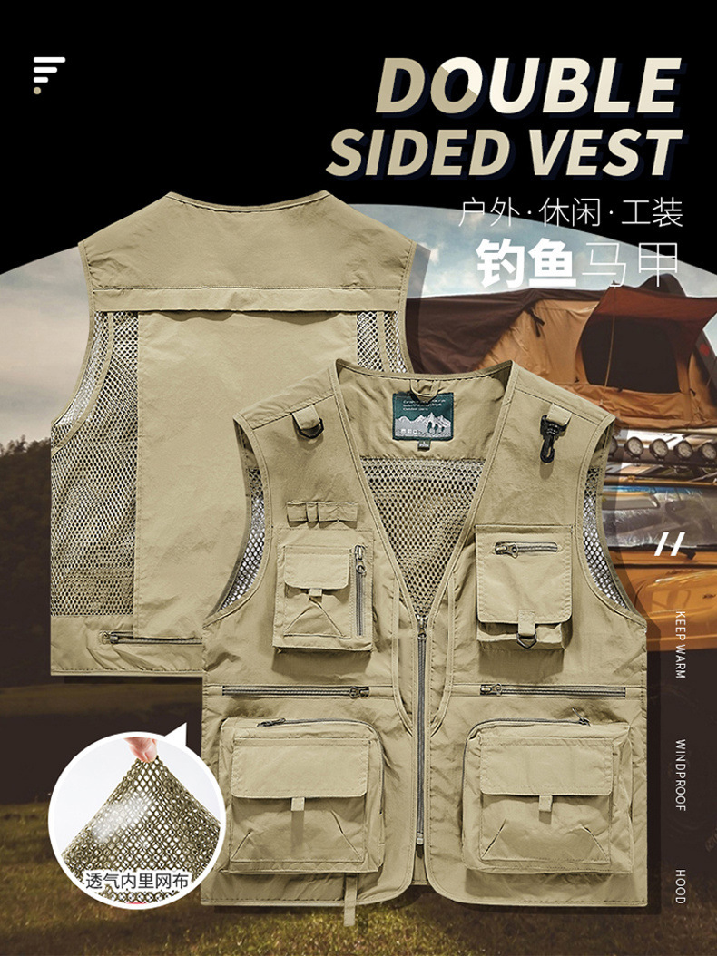 국경 간 대형 멀티 포켓 조끼 남자 새로운 낚시 메쉬 조끼 등산 사진 양복 조끼 재킷 야외 레저스토어 가기