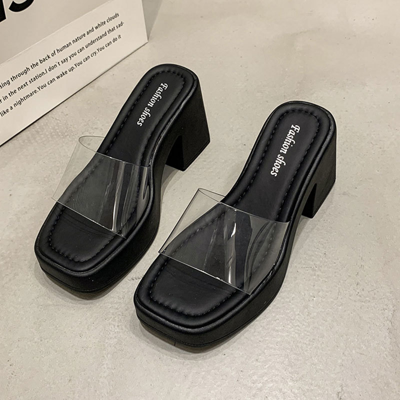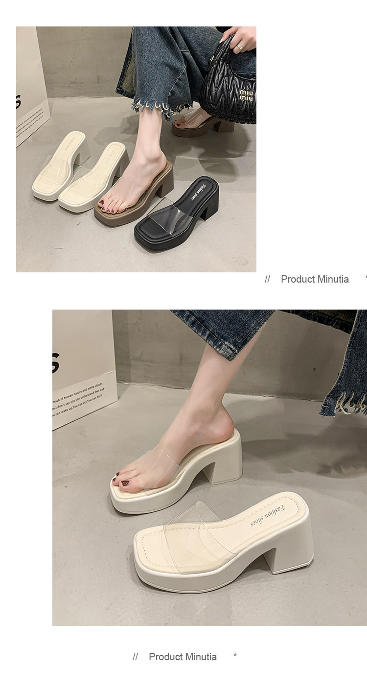 여름 아우터로 입기 좋은 여성용 고급 두꺼운 밑창 슬리퍼 2025 새로운 두꺼운 굽 슬리퍼 투명 하이힐 요정 스타일 샌들스토어 가기