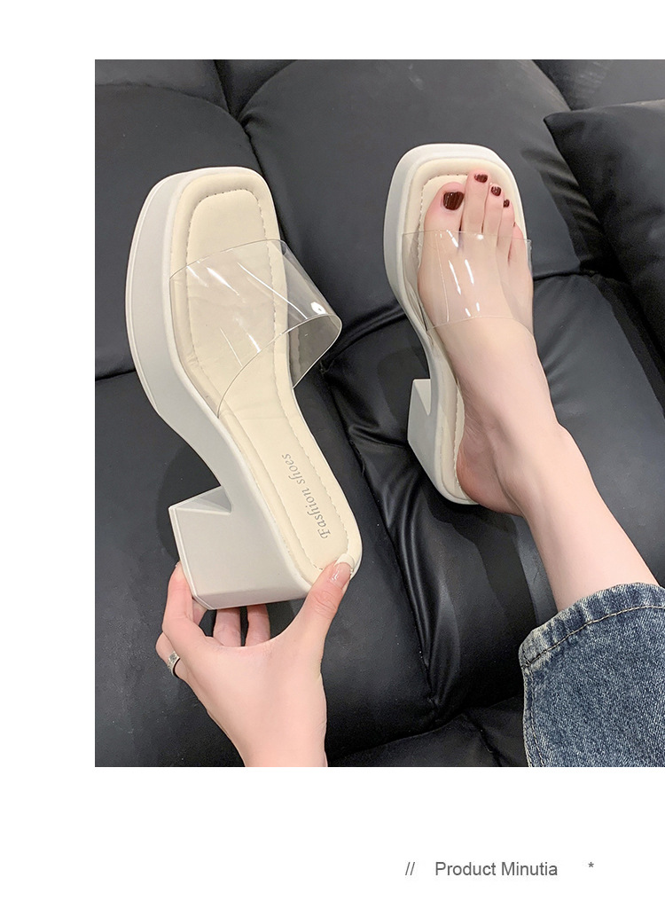 여름 아우터로 입기 좋은 여성용 고급 두꺼운 밑창 슬리퍼 2025 새로운 두꺼운 굽 슬리퍼 투명 하이힐 요정 스타일 샌들