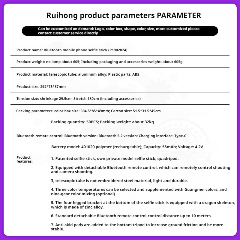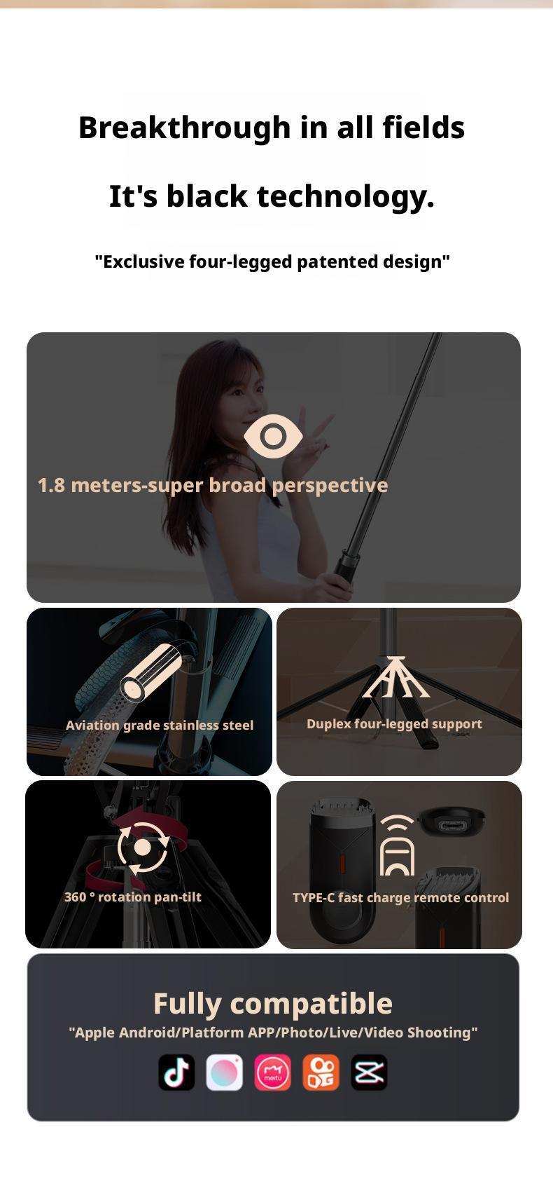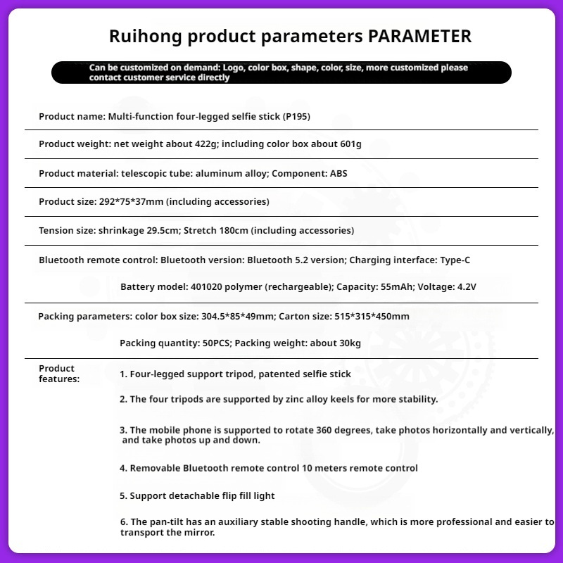 1.8m P195 P190 셀카봉 360 ° 회전식 다기능 일체형 4피트 스탠드 휴대용 플로어 스탠딩 범용스토어 가기