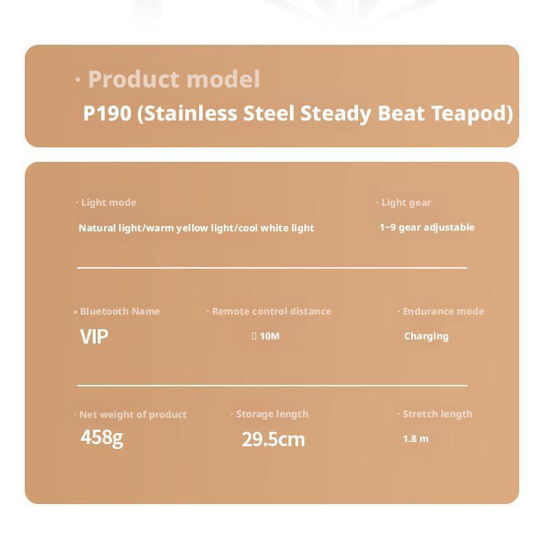 • 1.8m 스테인리스 스틸 P190 [원형 조명 10inch개 포함]
