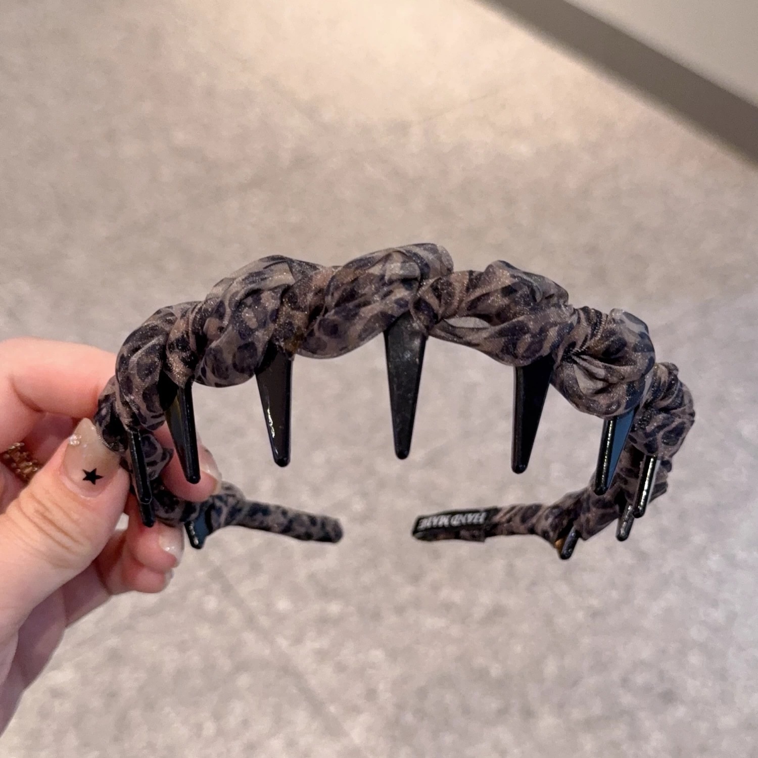 • 표범 무늬 메쉬 치아 빗 머리띠