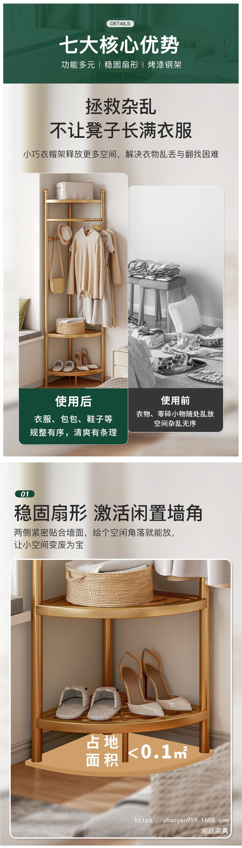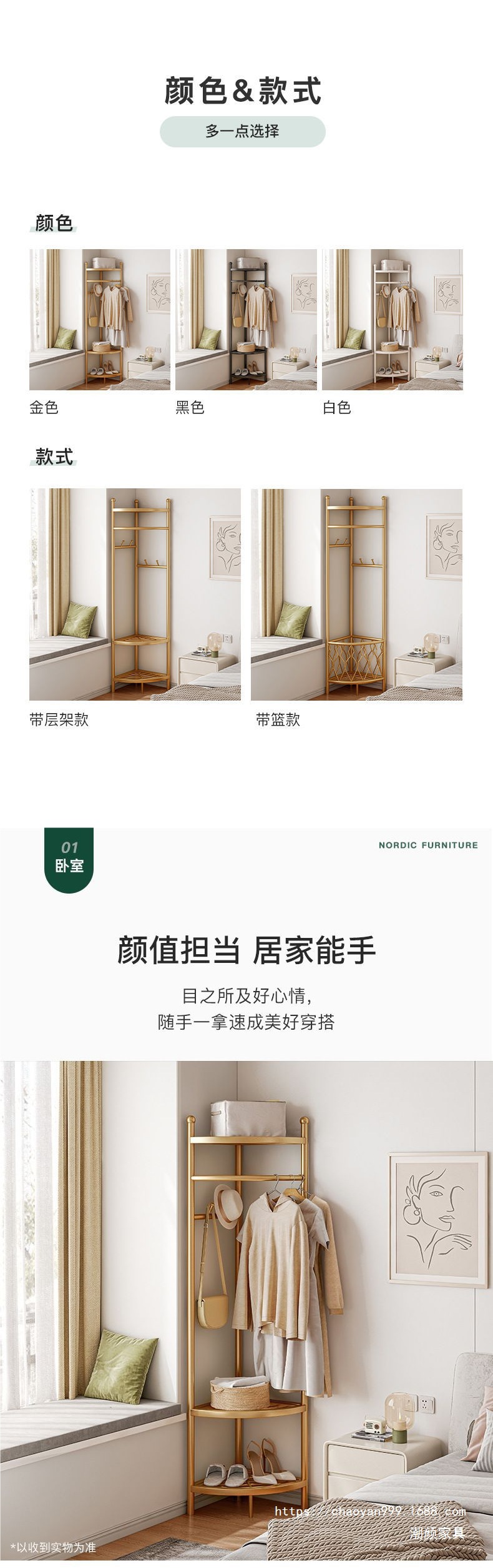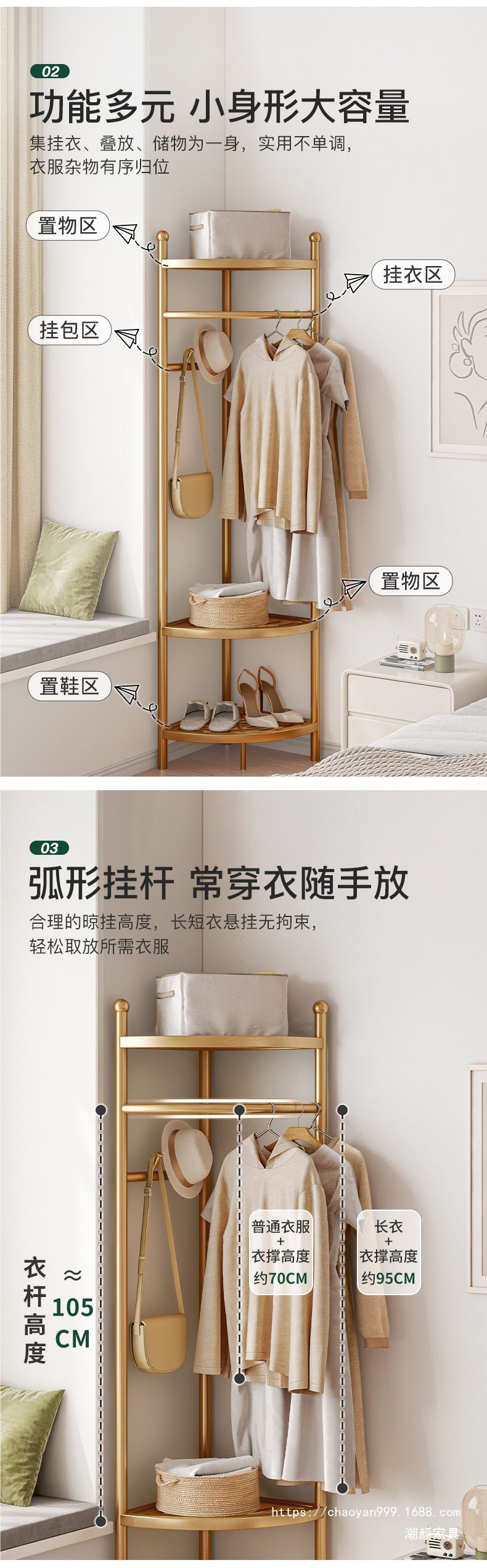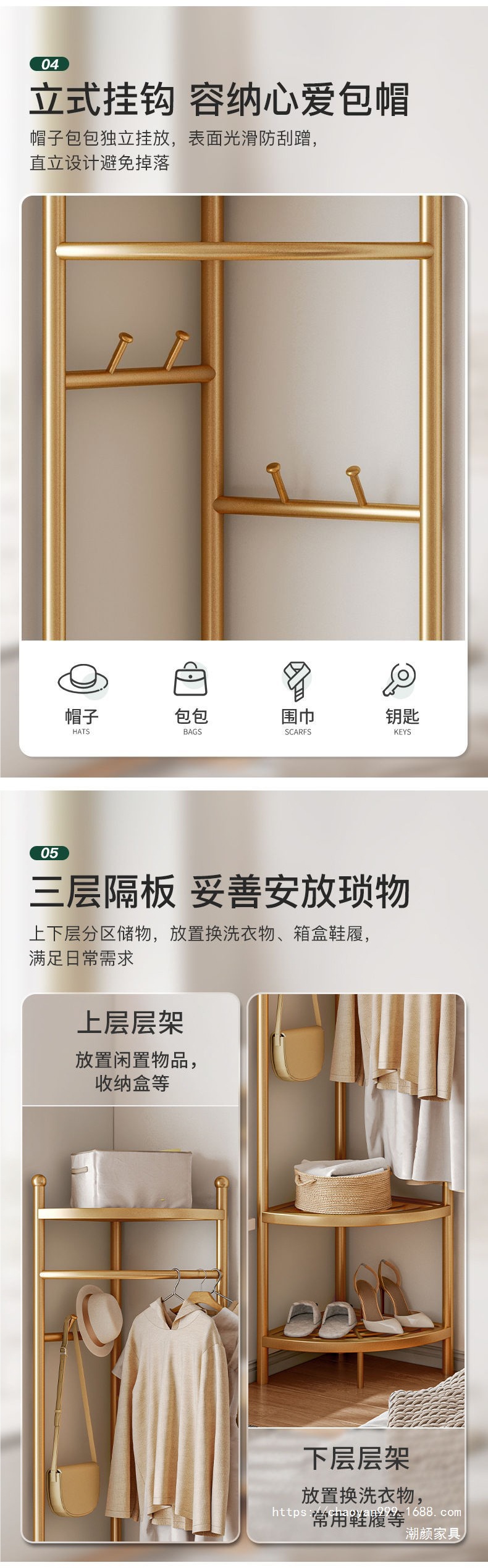 코너 옷걸이, 바닥에서 천장까지 침실 코너 간단한 옷걸이, 가정용 코너 옷걸이, 가벼운 고급 옷걸이