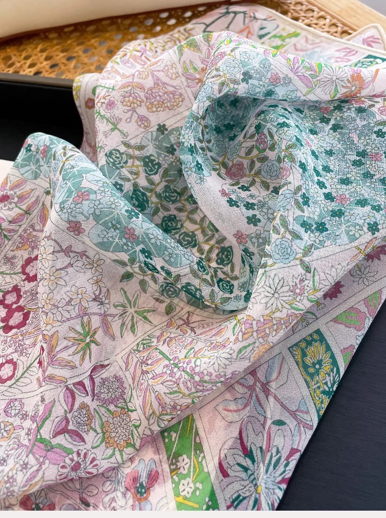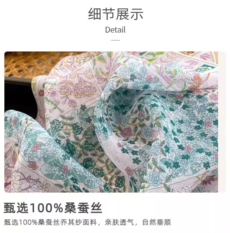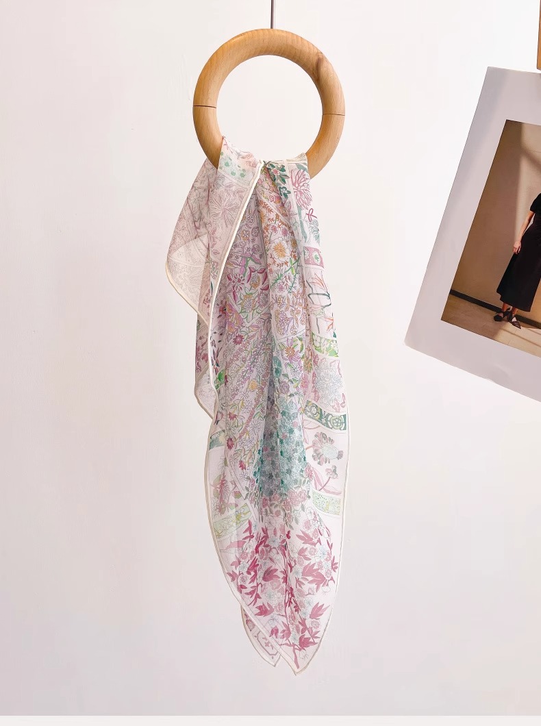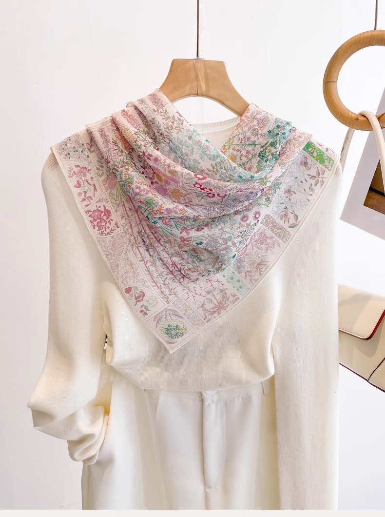 100% 뽕나무 실크 조젯 하트 비트 가든 65 스퀘어 스카프 봄, 가을 여름 여성 패션 얇은 실크 스카프스토어 가기
