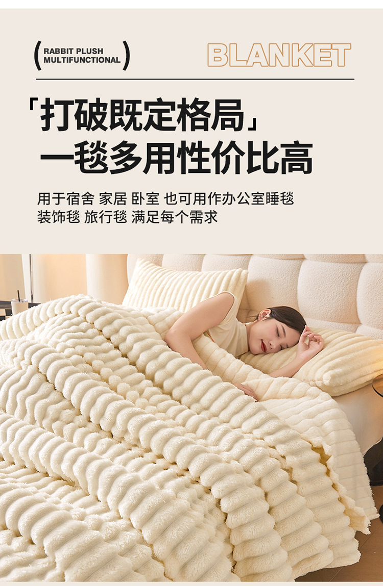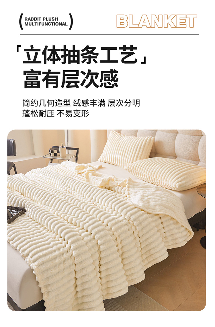 국경 간 대외 무역 도매 토끼 플러시 스트립 담요 플란넬 담요 두꺼운 흡수성 부드러운 남성과 여성의 가정용 담요