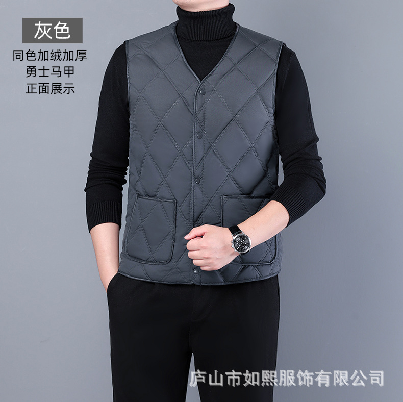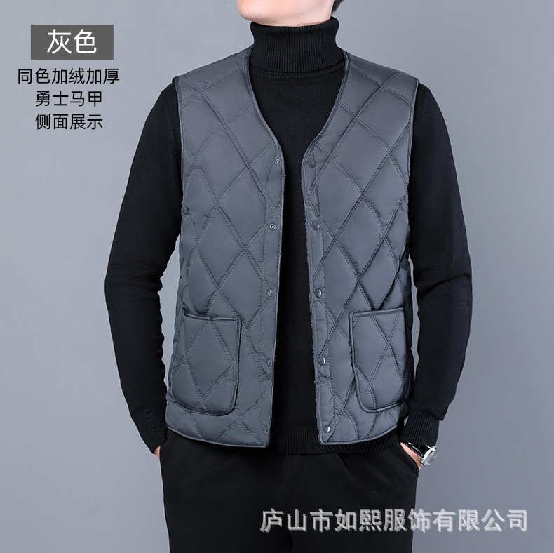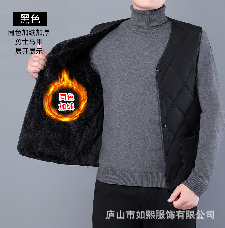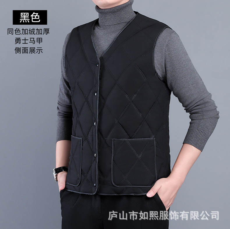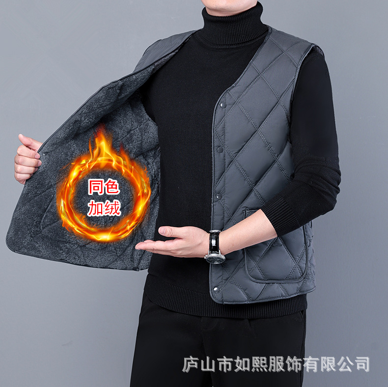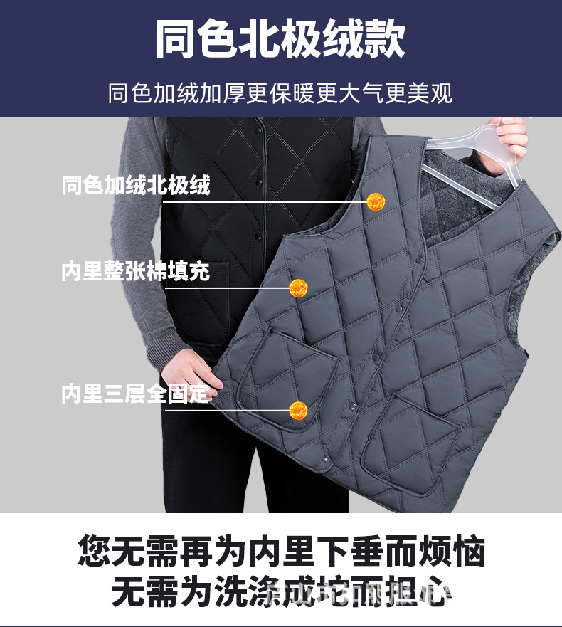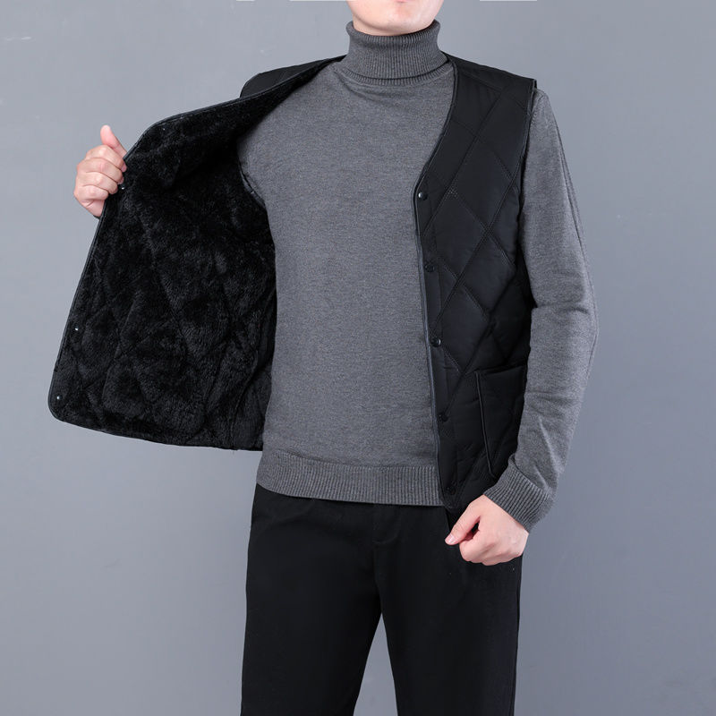 중년 남성 아빠의 면 조끼 플러스 벨벳 조끼 양복 조끼 V 넥 조끼 비즈니스 두꺼운 다용도스토어 가기