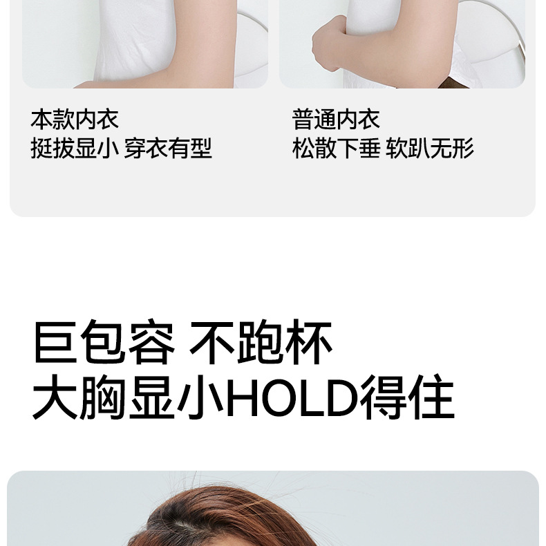 가슴이 작은 여성용 속옷, 푸쉬업, 보조가슴축소, 처짐방지, 노와이어 속옷, 큰가슴, 작아보이는 여름용 얇은 심리스 브라스토어 가기