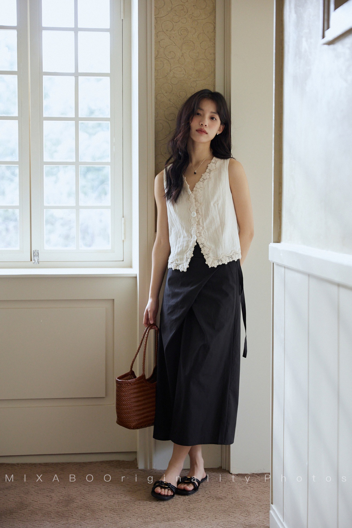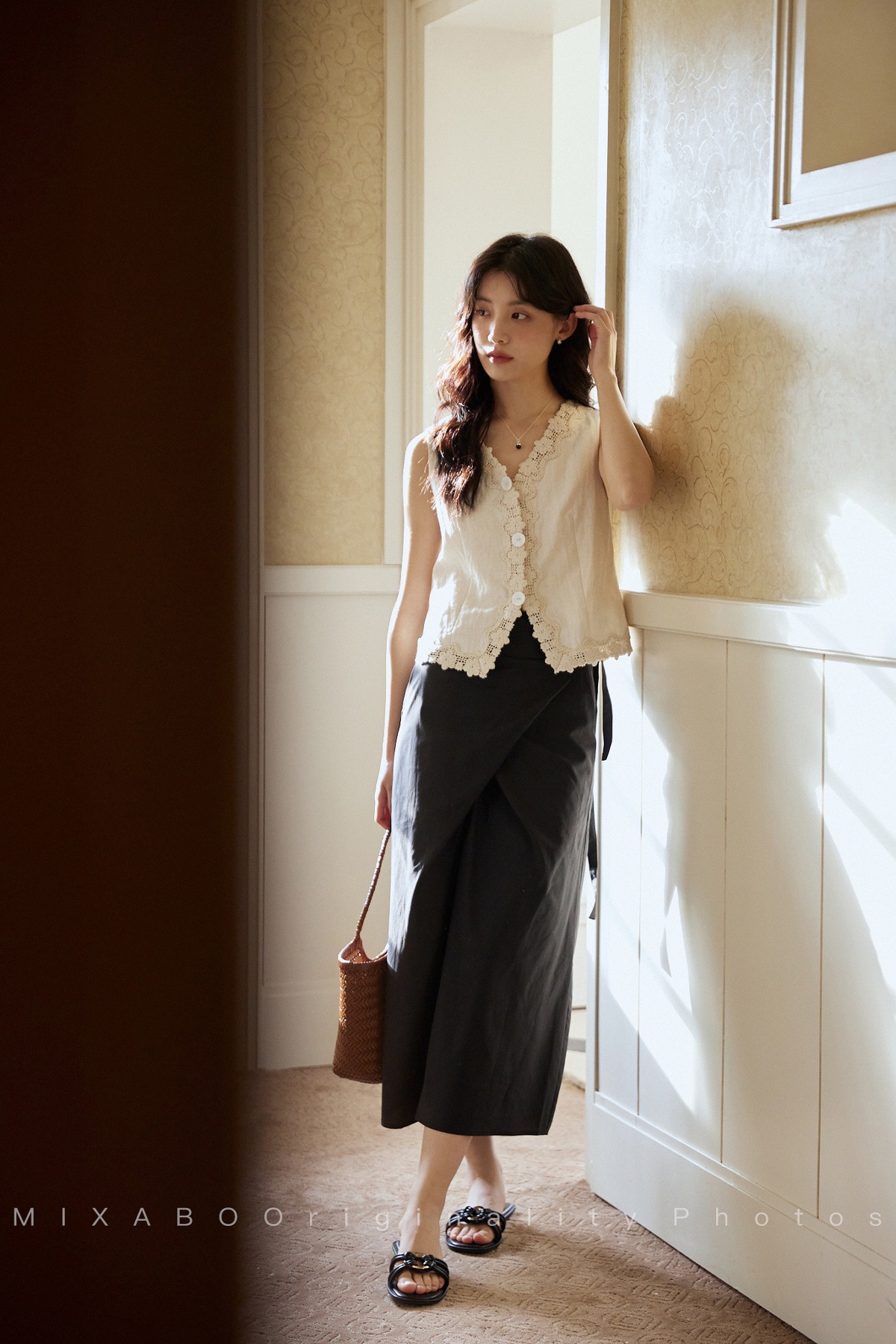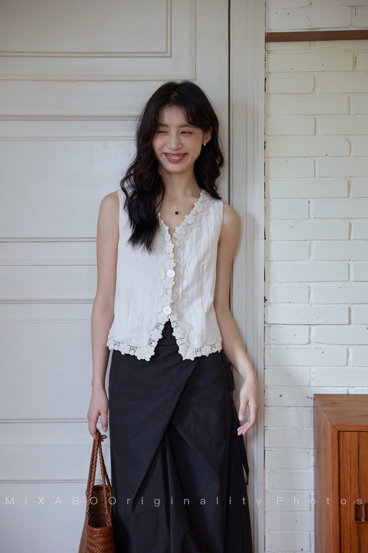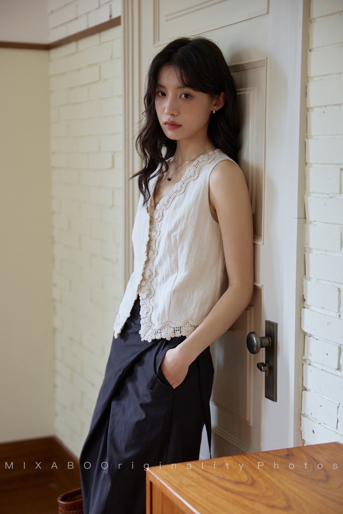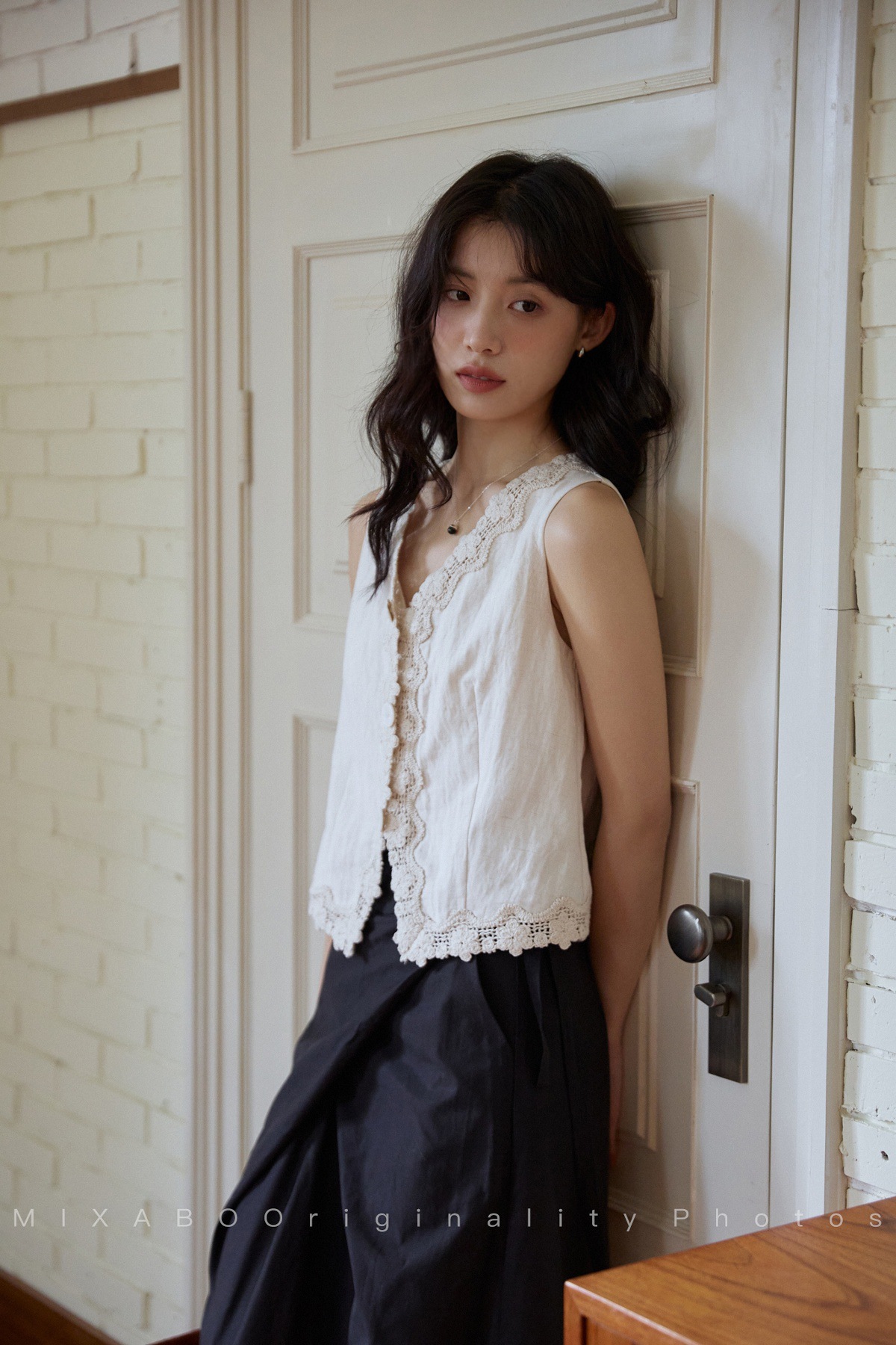MIXABO 프렌치 살구 레이스 v 넥 조끼 여성 여름 디자인 조끼 민소매 주름 질감 탑스토어 가기