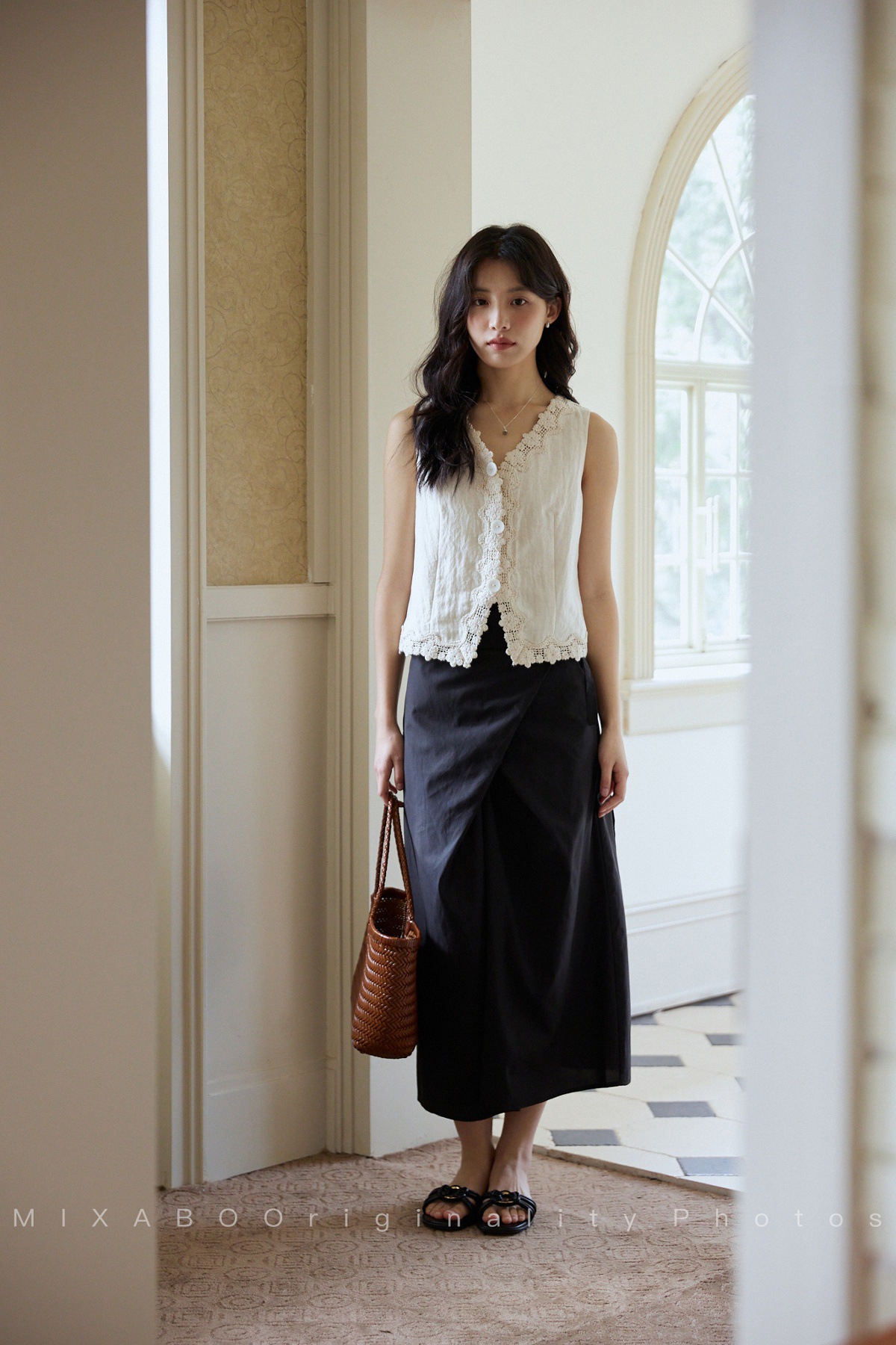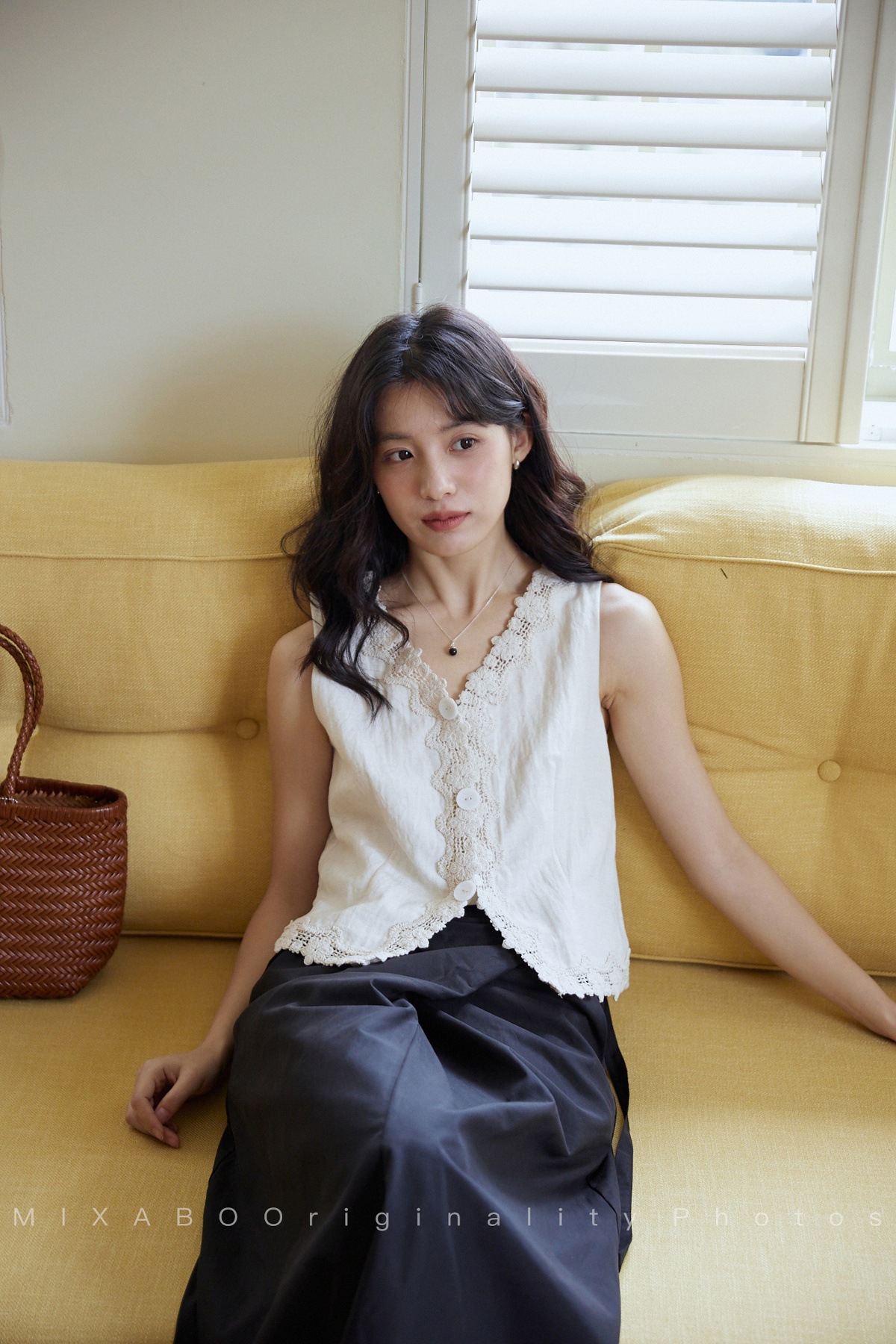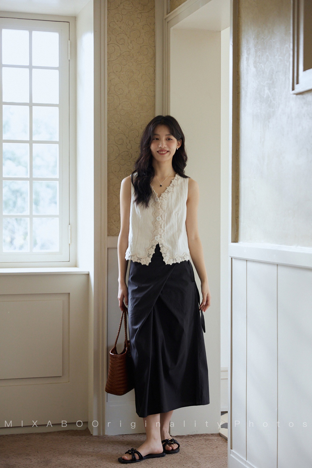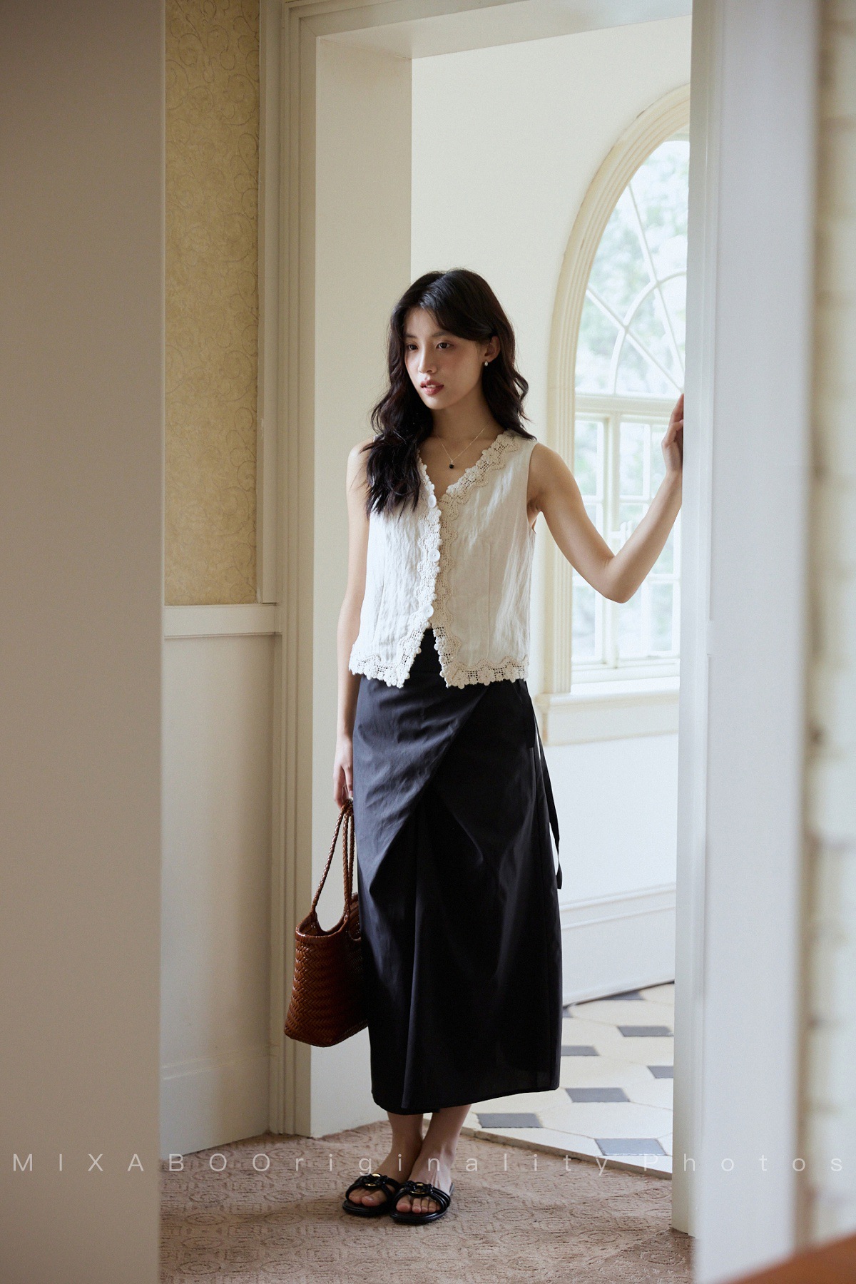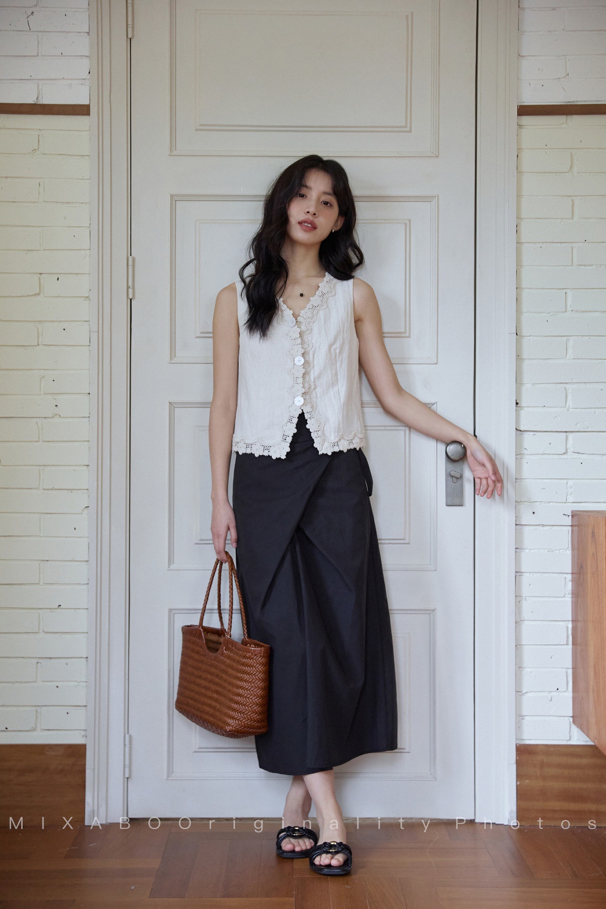 MIXABO 프렌치 살구 레이스 v 넥 조끼 여성 여름 디자인 조끼 민소매 주름 질감 탑스토어 가기