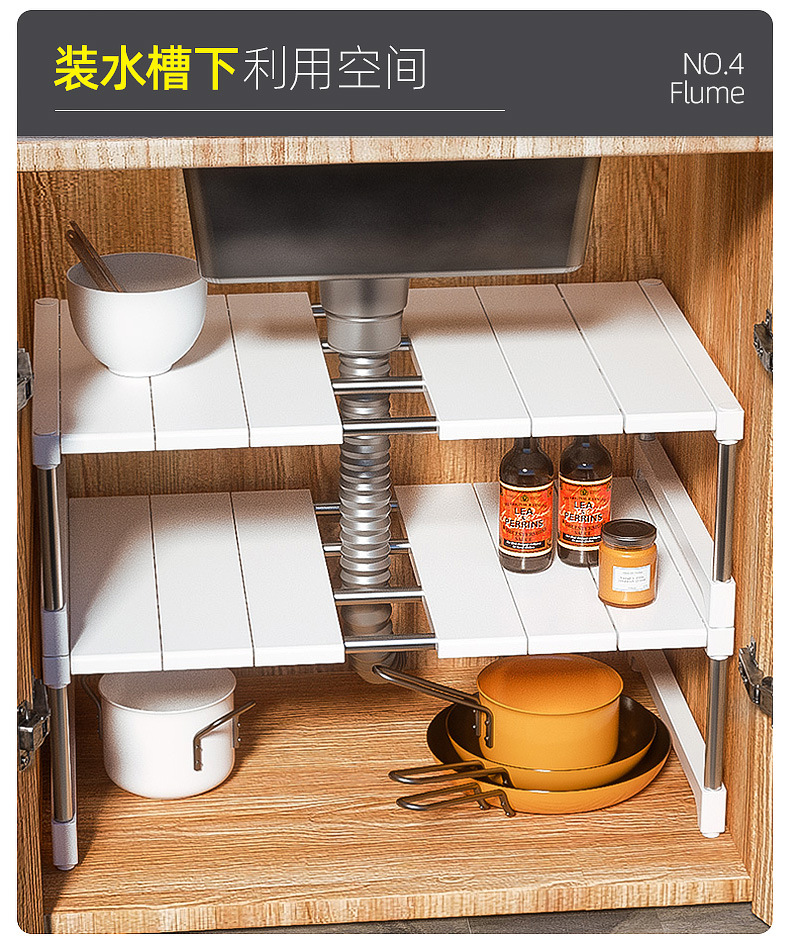 주방 수납 선반 데스크탑 다층 개폐식 캐비닛 파티션 분리 정리 선반 싱크대 아래 수납 선반