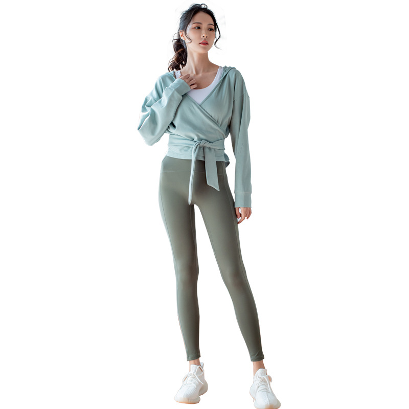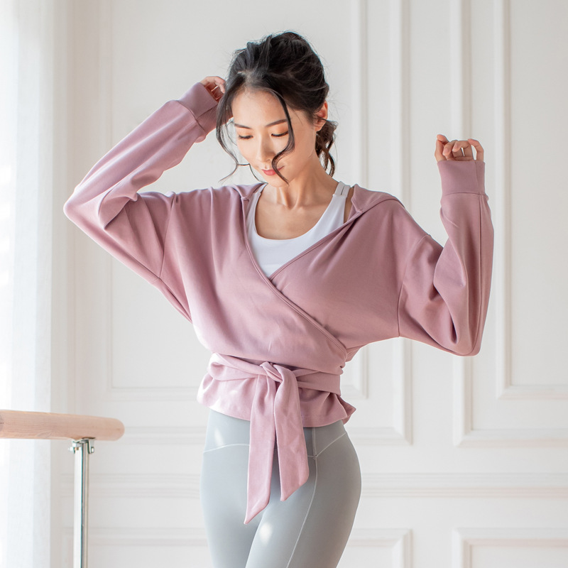 새로운 벨벳 긴팔 요가 옷 가을, 겨울 레이스 업 코튼 피트니스웨어 루즈 스포츠 스웨트 천 후드 재킷 여성용스토어 가기