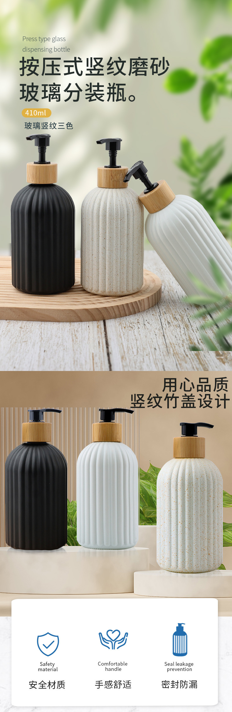 대나무 펌프 유리병 손 소독제 주방 비누 디스펜서가있는 액체 식기 세척 비누 디스펜서 푸시 형 빈 병 리필스토어 가기