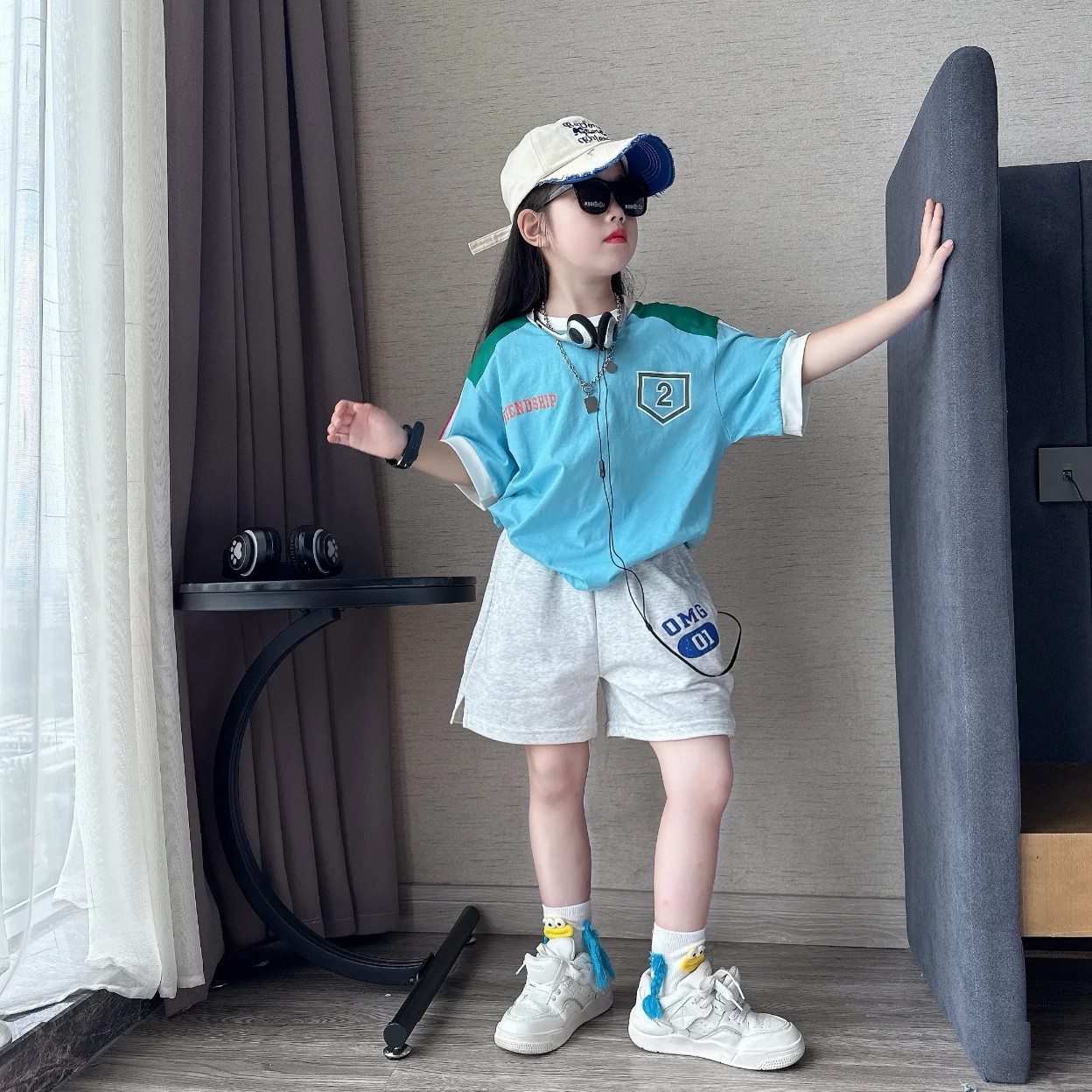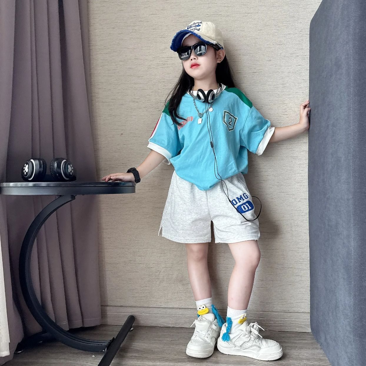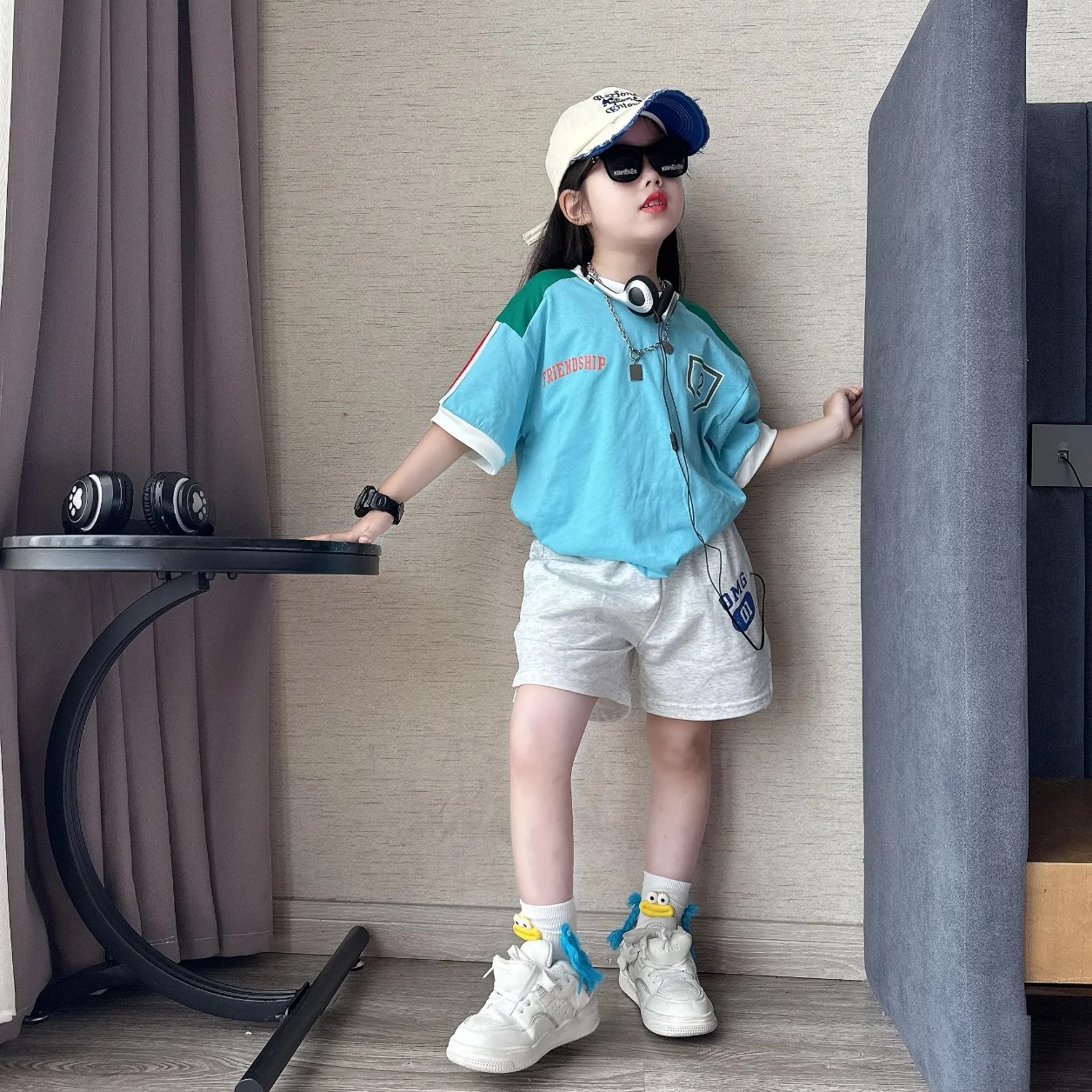 여름 트렌디하고 멋진 도파민 패션 대학 스타일 화이트 루즈 반팔 스포츠 다용도 반바지 정장 한국어 버전