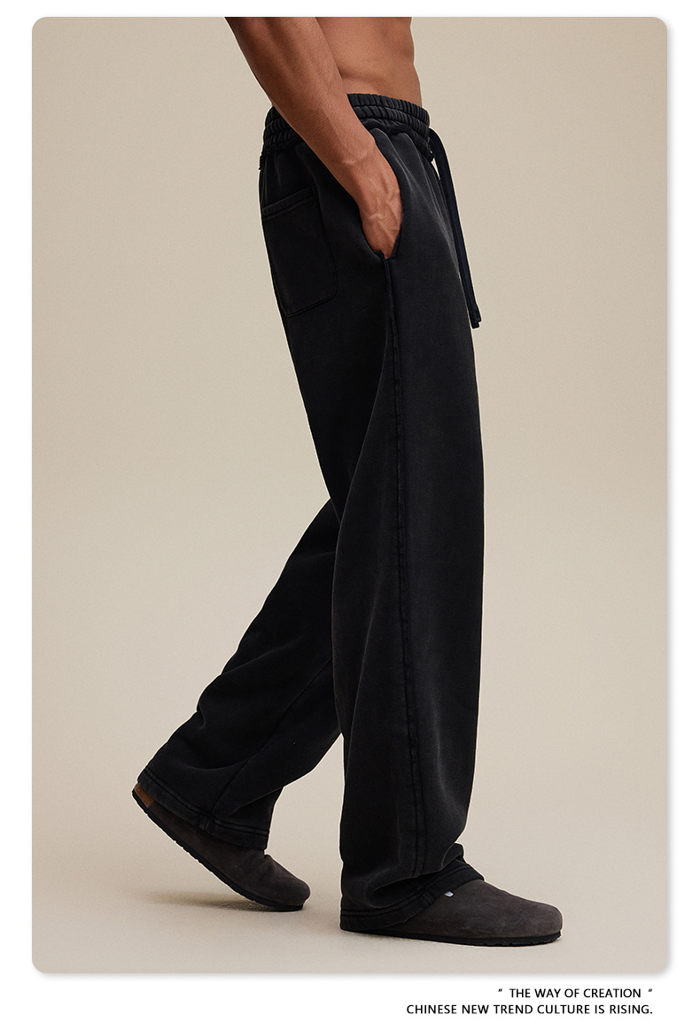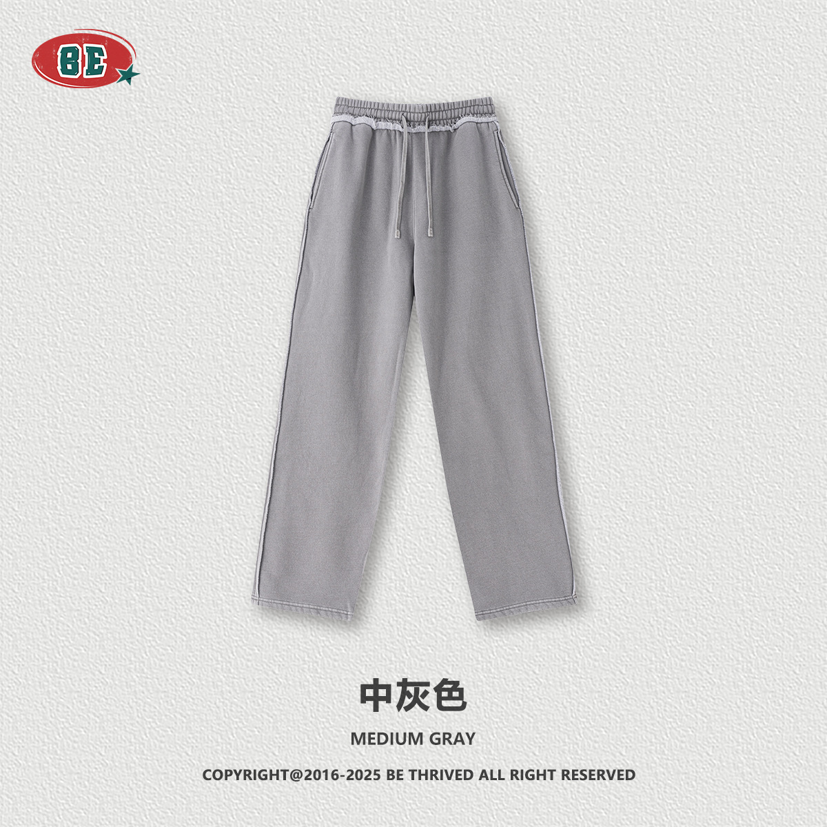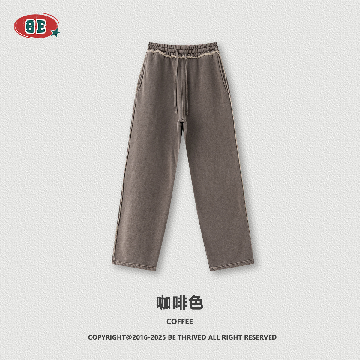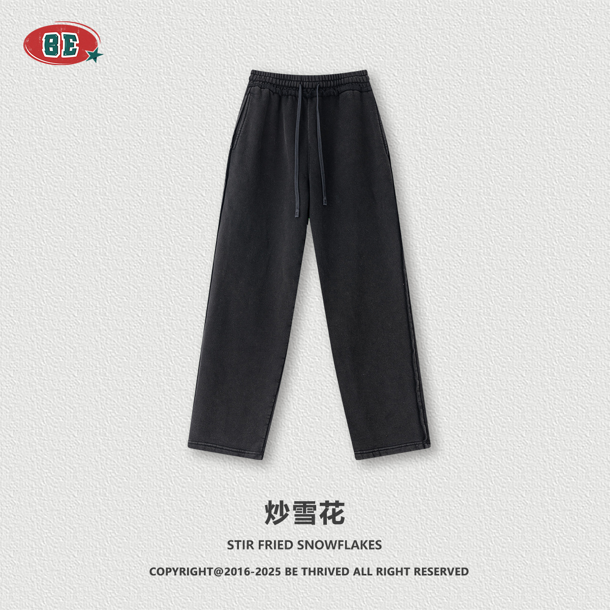 BE 남성복 | 2025 가을 아메리칸 레트로 인 올드 트렌디 브랜드 헤비 루즈 엣지 워싱 플러스 벨벳 남성용 스트레이트 팬츠스토어 가기