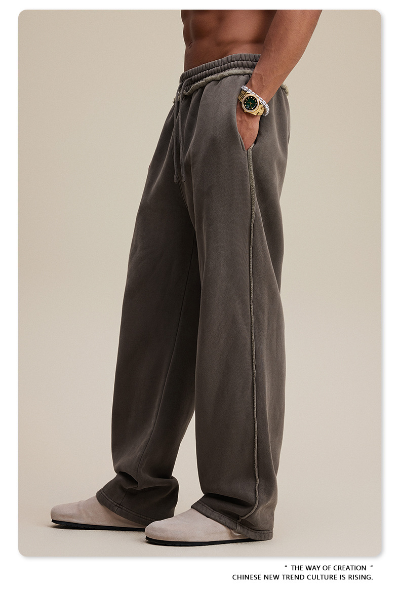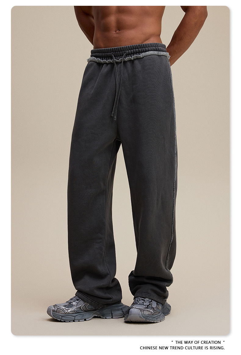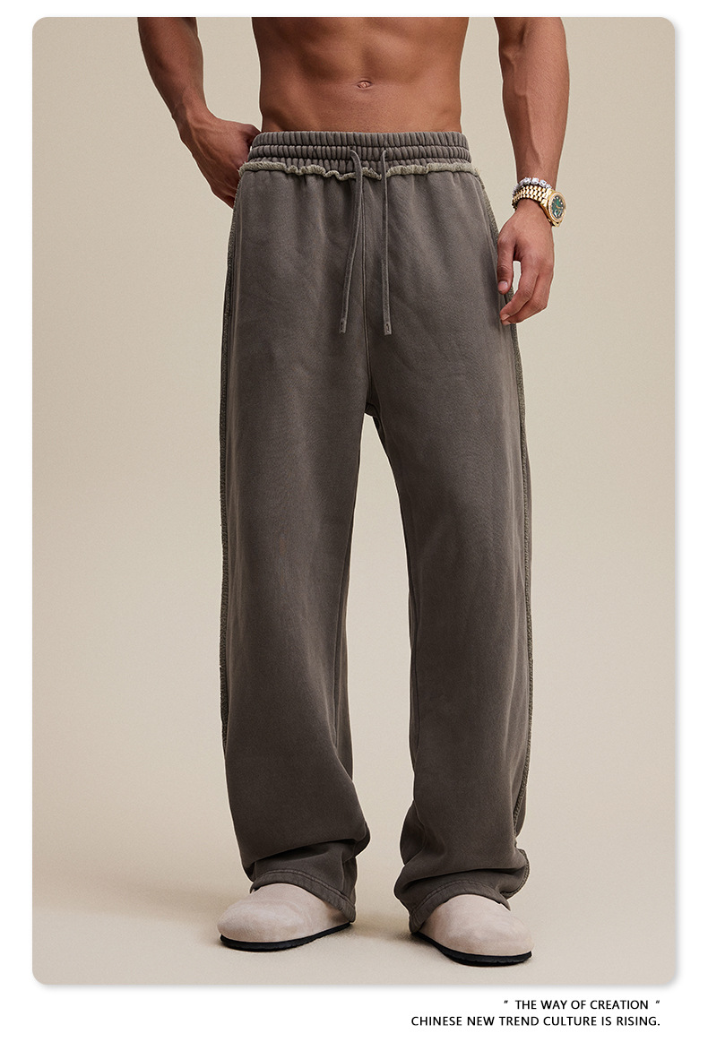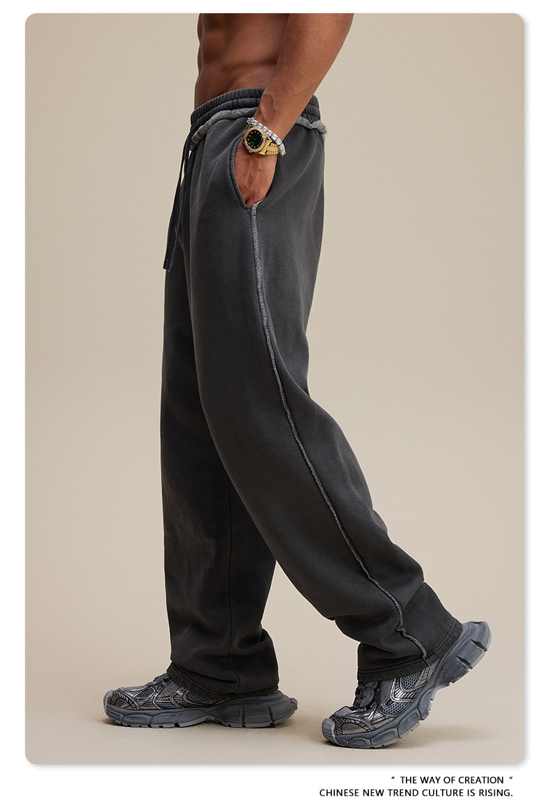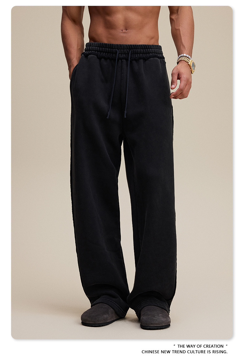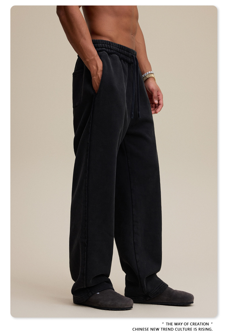 BE 남성복 | 2025 가을 아메리칸 레트로 인 올드 트렌디 브랜드 헤비 루즈 엣지 워싱 플러스 벨벳 남성용 스트레이트 팬츠스토어 가기