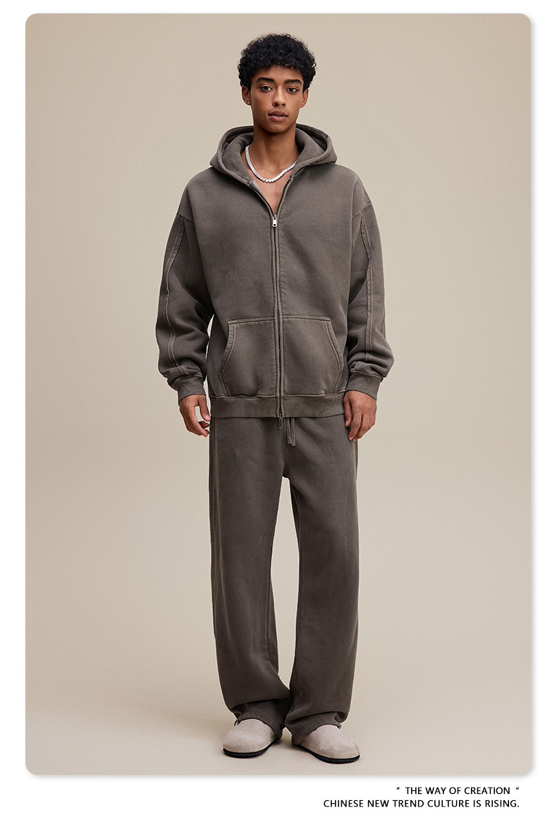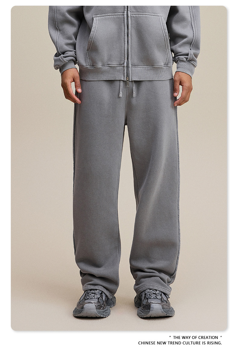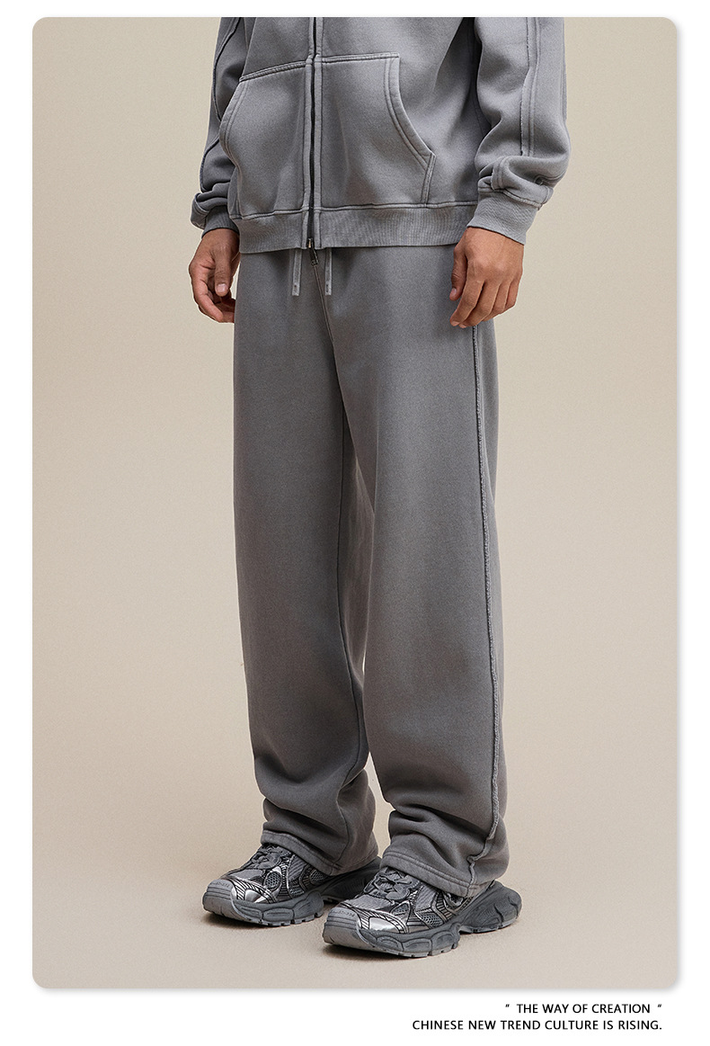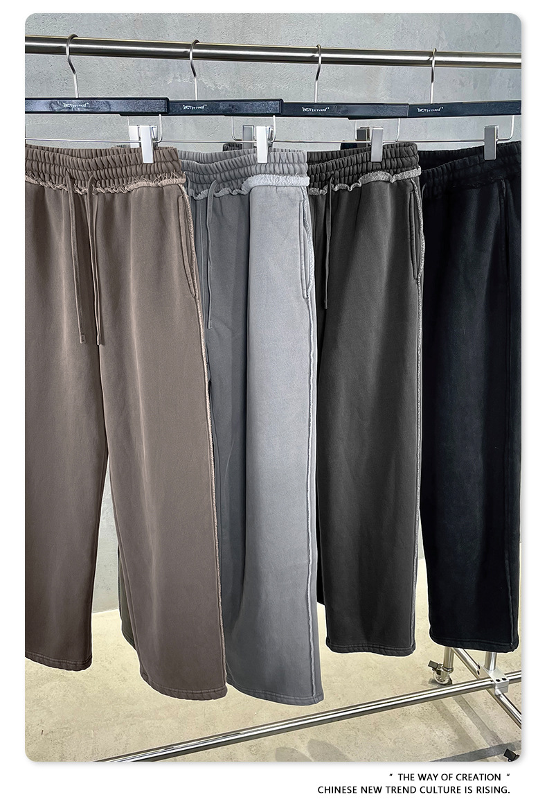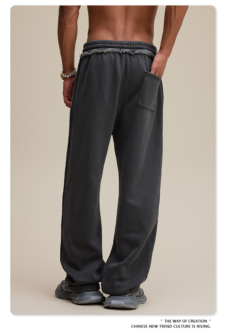 BE 남성복 | 2025 가을 아메리칸 레트로 인 올드 트렌디 브랜드 헤비 루즈 엣지 워싱 플러스 벨벳 남성용 스트레이트 팬츠스토어 가기