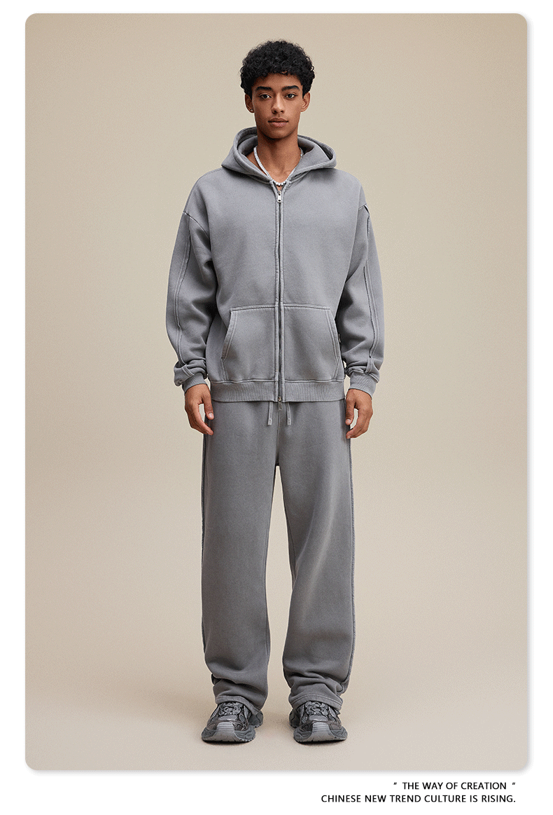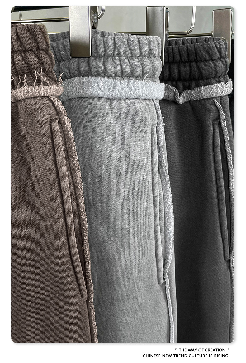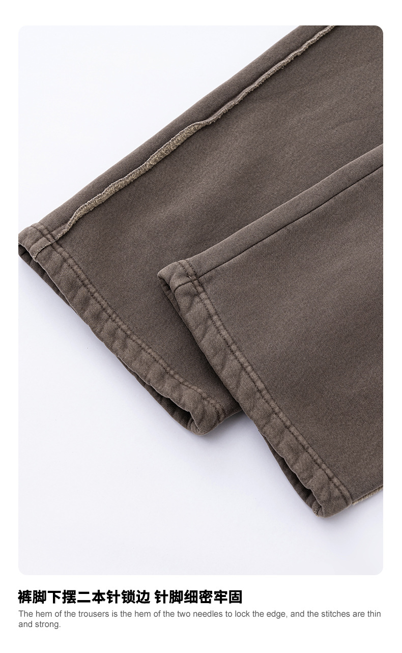 BE 남성복 | 2025 가을 아메리칸 레트로 인 올드 트렌디 브랜드 헤비 루즈 엣지 워싱 플러스 벨벳 남성용 스트레이트 팬츠