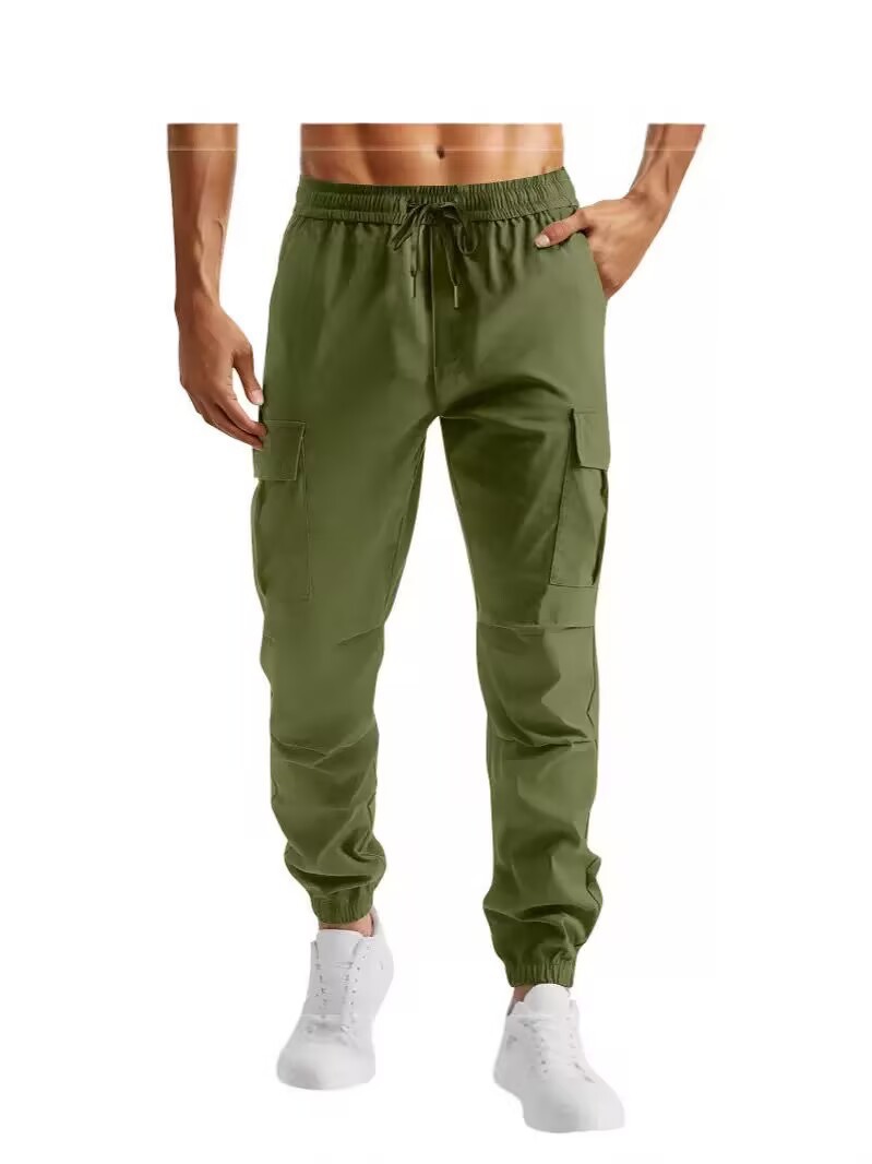 2024 사계절 새로운 스포츠 바지 남성 러닝 피트니스 바지 야외 멀티 포켓 오버올 캐주얼 바지 재고 있음