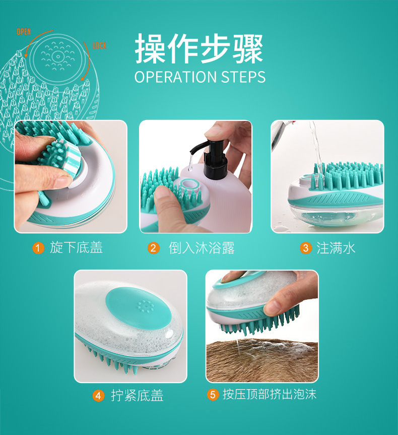 죽은 머리카락을 제거하는 휴대용 애완동물 빗질 및 목욕 올인원 브러시, 고양이 목욕 브러시, 개 마사지 브러시, 부동 모발 제거 목욕 브러시