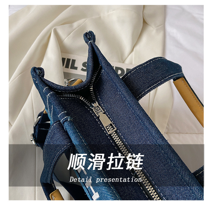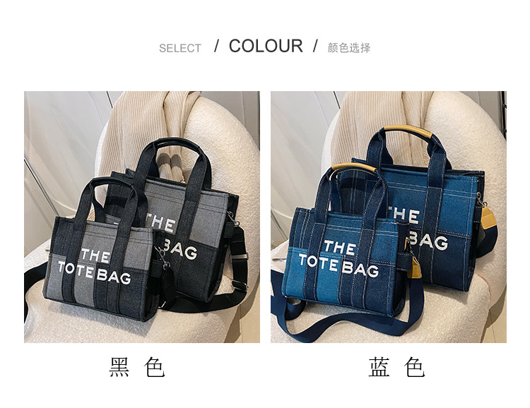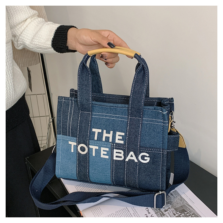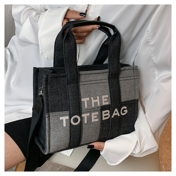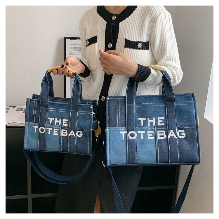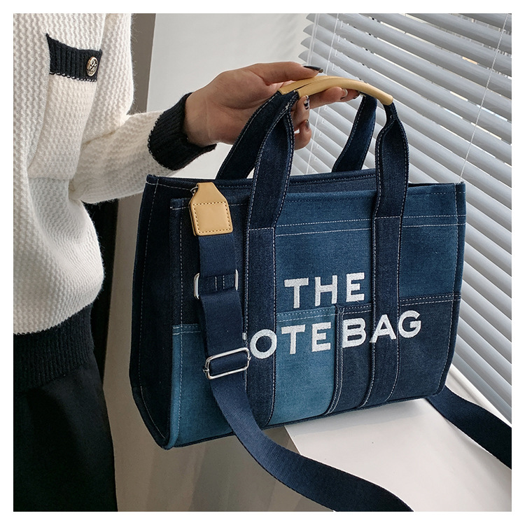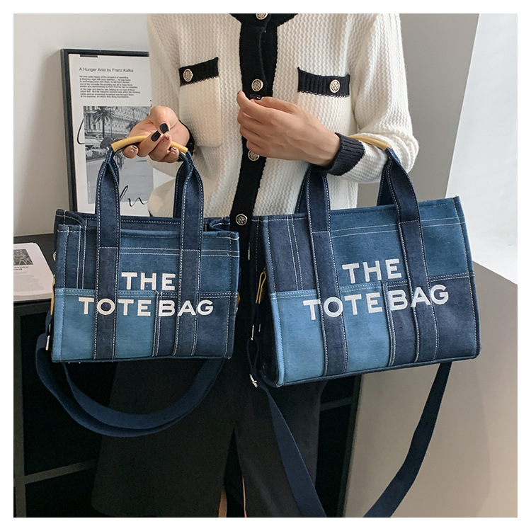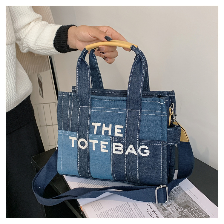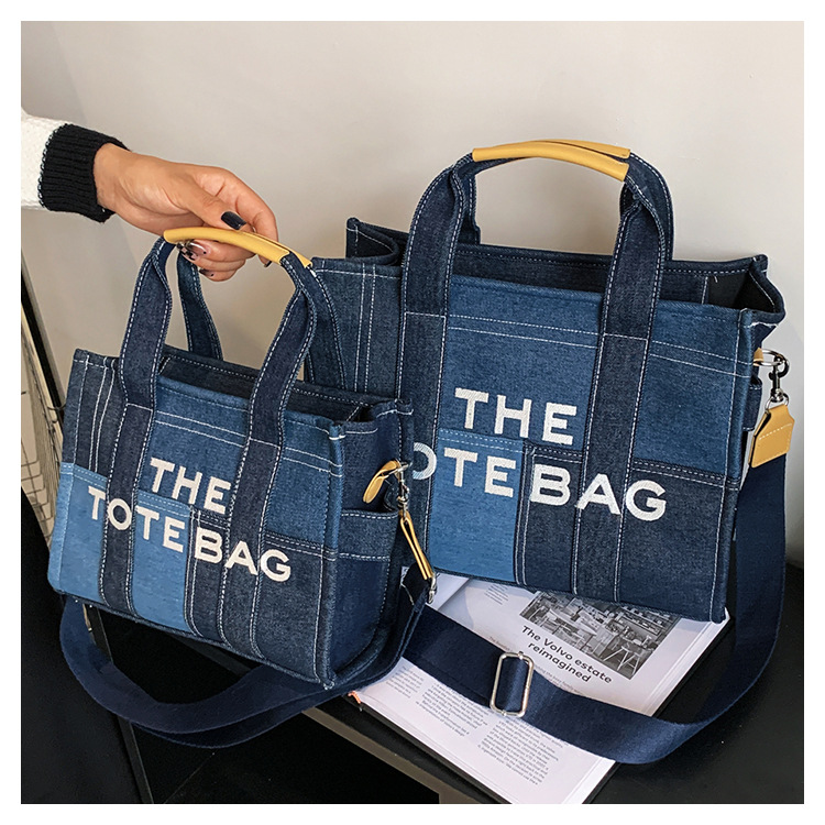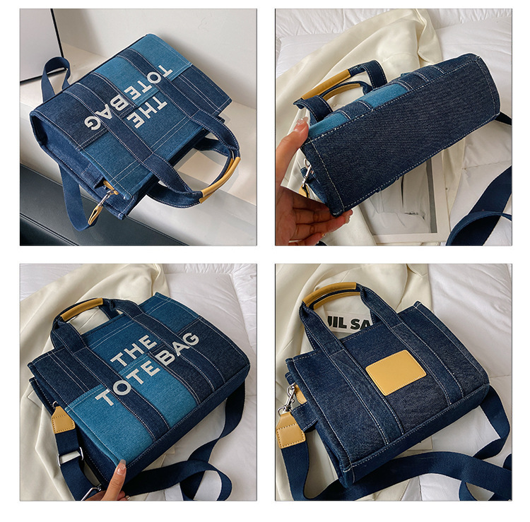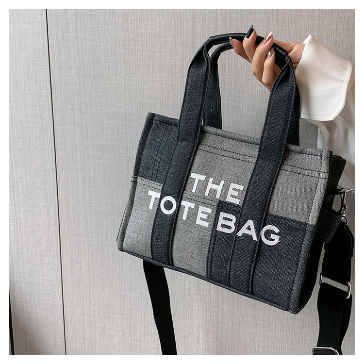 국경 간 대외 무역 캔버스 가방 여성용 가방 대용량 토트 백 캐주얼 스플 라이스 싱글 숄더 휴대용 크로스 바디 데님 가방스토어 가기
