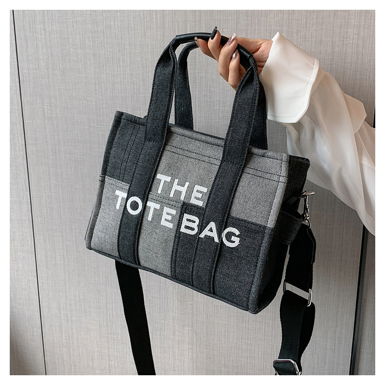 국경 간 대외 무역 캔버스 가방 여성용 가방 대용량 토트 백 캐주얼 스플 라이스 싱글 숄더 휴대용 크로스 바디 데님 가방