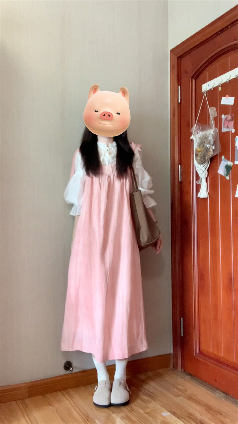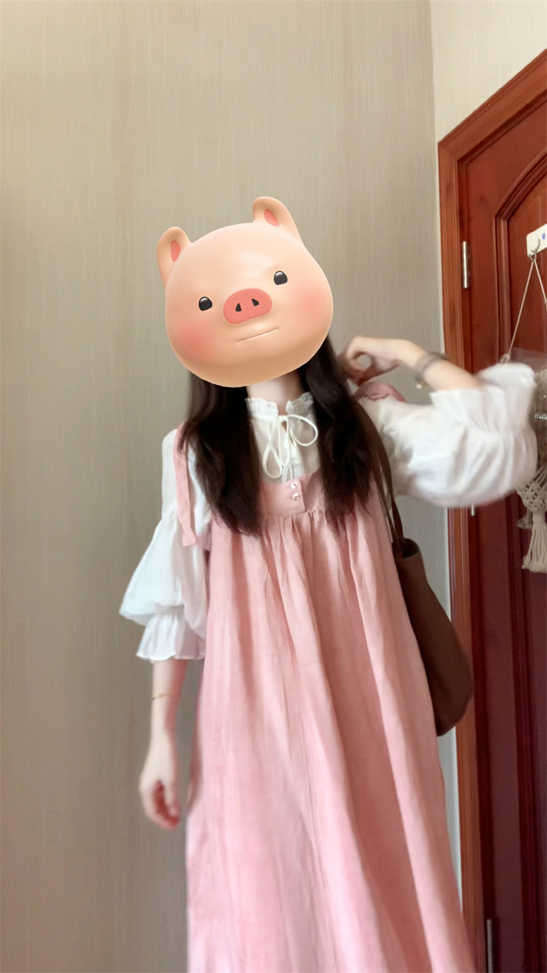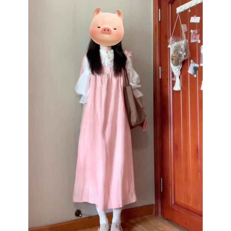 2025 여름 새로운 달콤하고 부드러운 스타일 느슨한 서스펜더 드레스 여학생 + 흰색 셔츠 투피스 양복스토어 가기