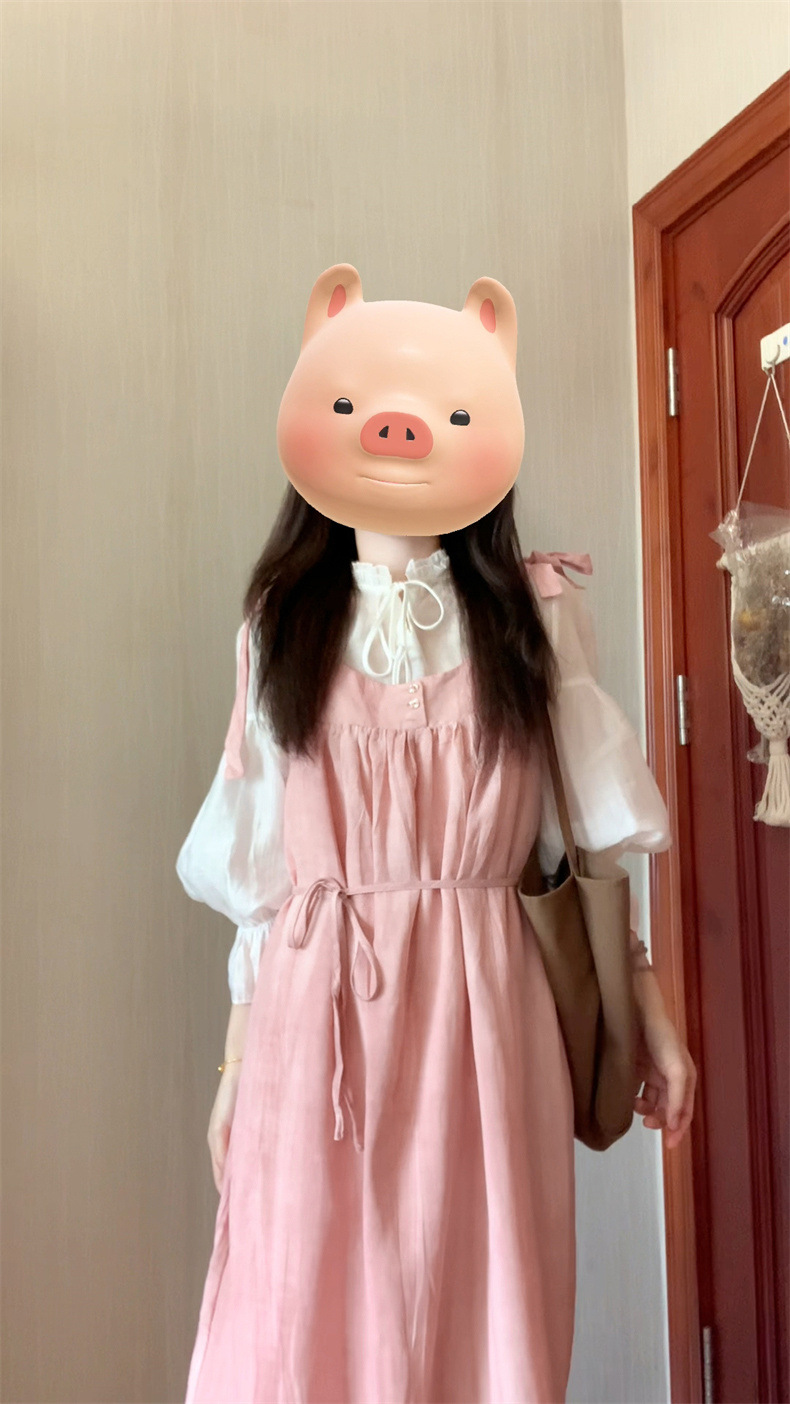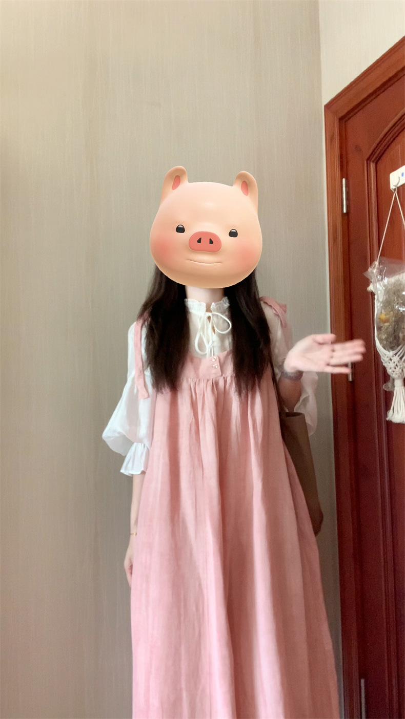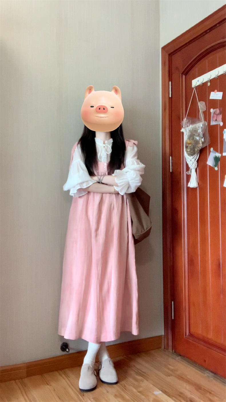 2025 여름 새로운 달콤하고 부드러운 스타일 느슨한 서스펜더 드레스 여학생 + 흰색 셔츠 투피스 양복스토어 가기