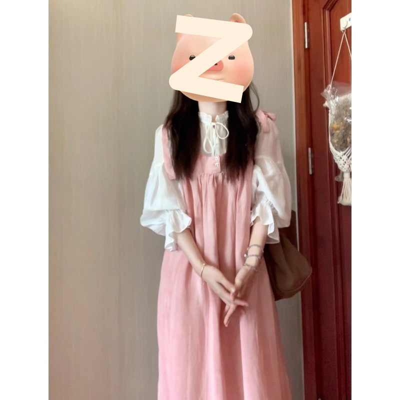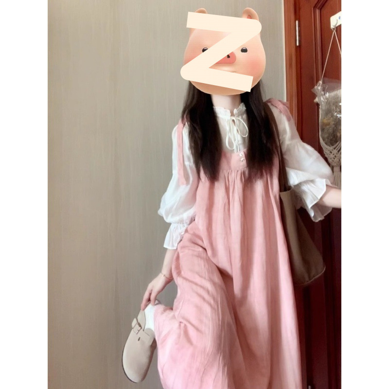 2025 여름 새로운 달콤하고 부드러운 스타일 느슨한 서스펜더 드레스 여학생 + 흰색 셔츠 투피스 양복