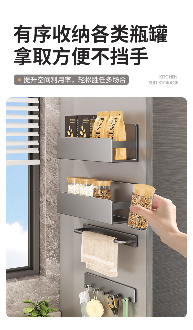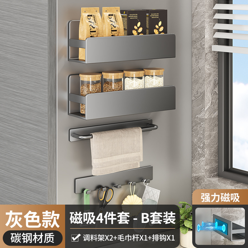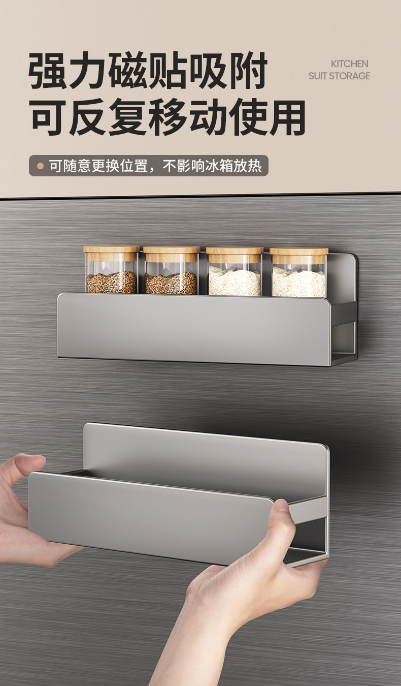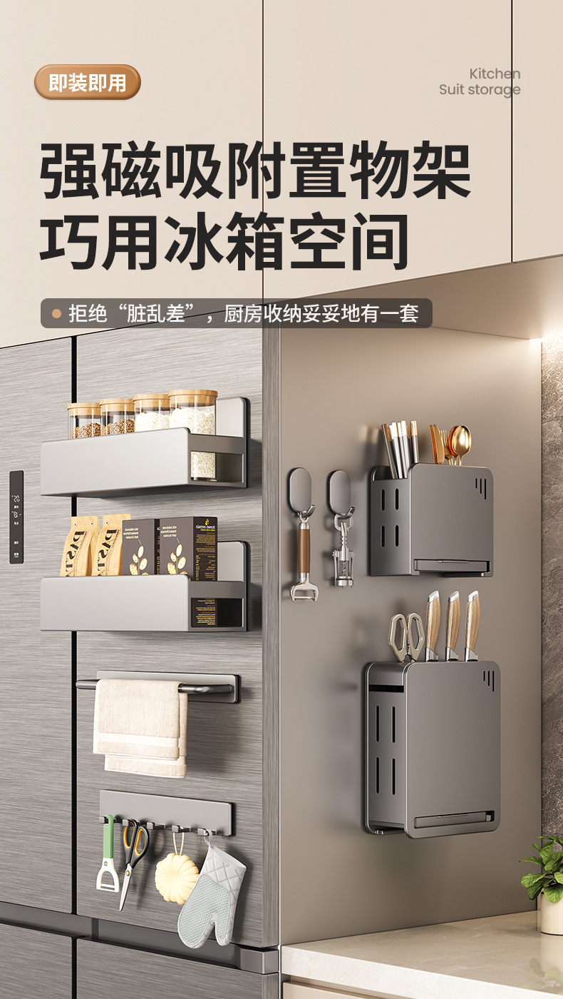 주방 자석 수납 선반, 냉장고 외부 수납 후크, 티슈 홀더, 펀치 없는 주방 조미료 및 칼 수납 선반스토어 가기