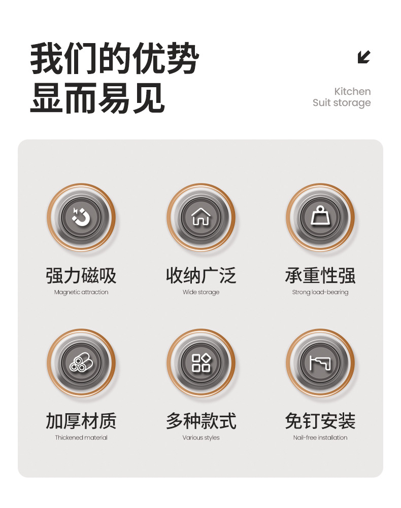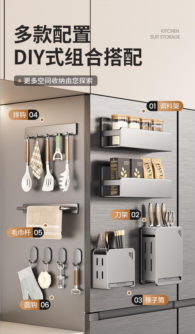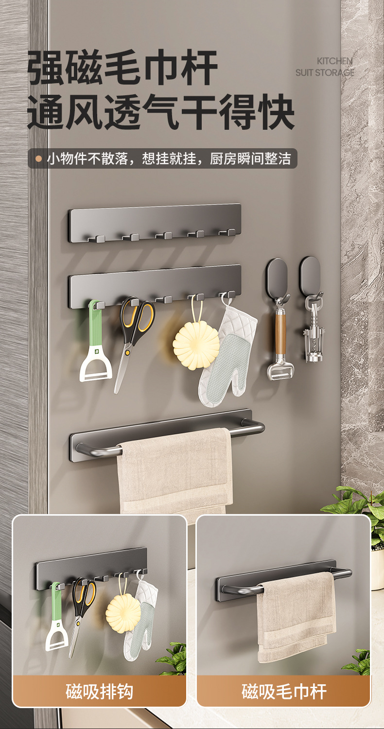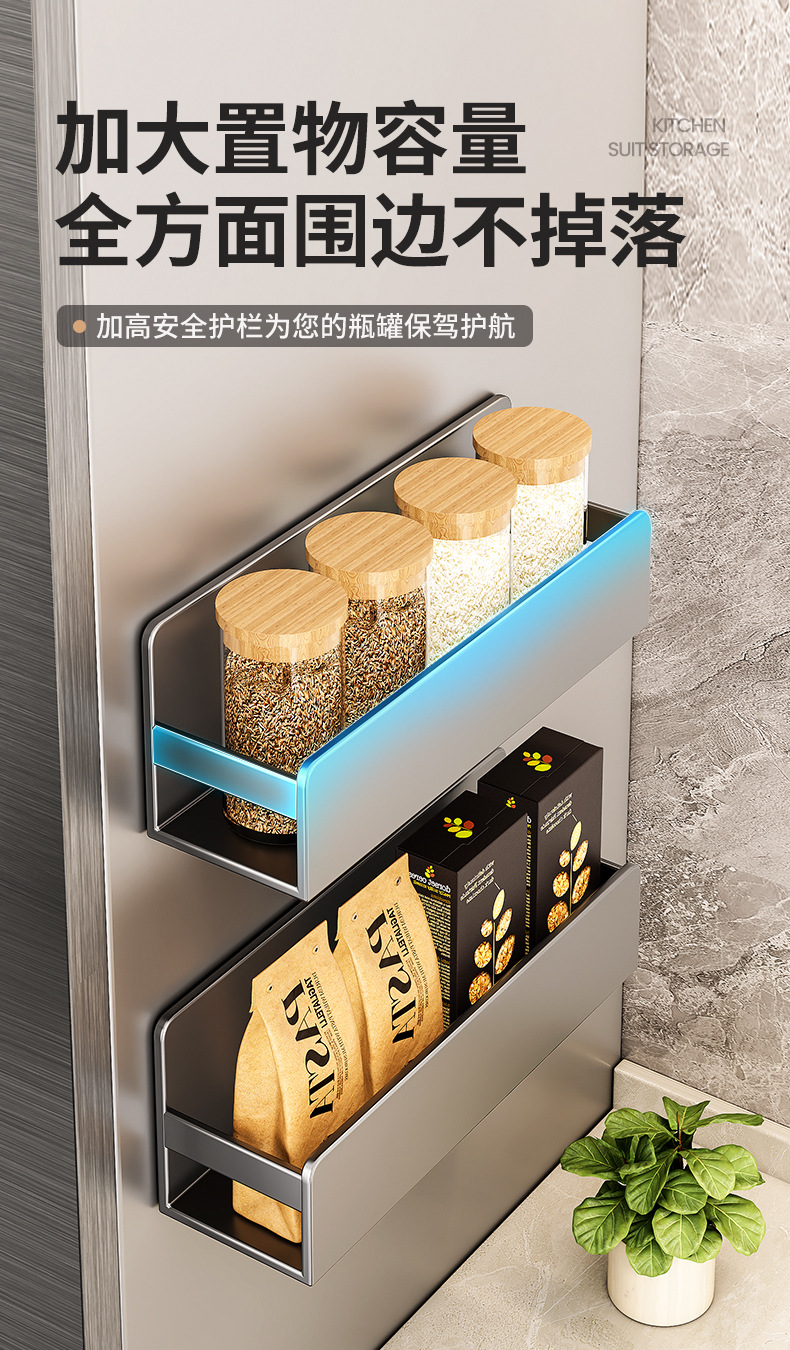 주방 자석 수납 선반, 냉장고 외부 수납 후크, 티슈 홀더, 펀치 없는 주방 조미료 및 칼 수납 선반스토어 가기