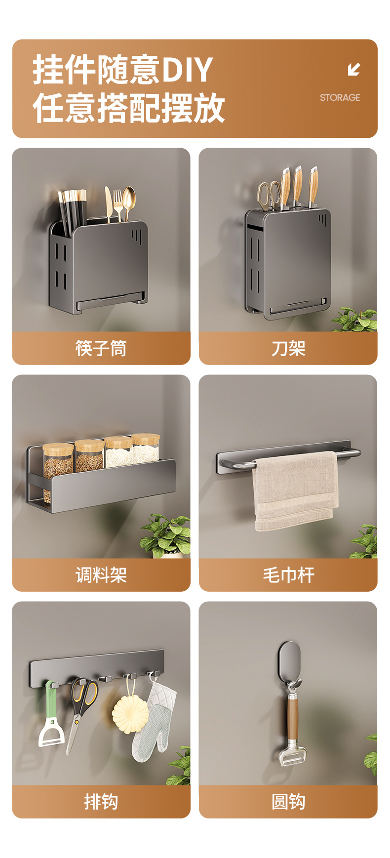 • 그레이 E 패키지 [양념걸이 + 수건걸이 + 줄고리 + 원형고리]