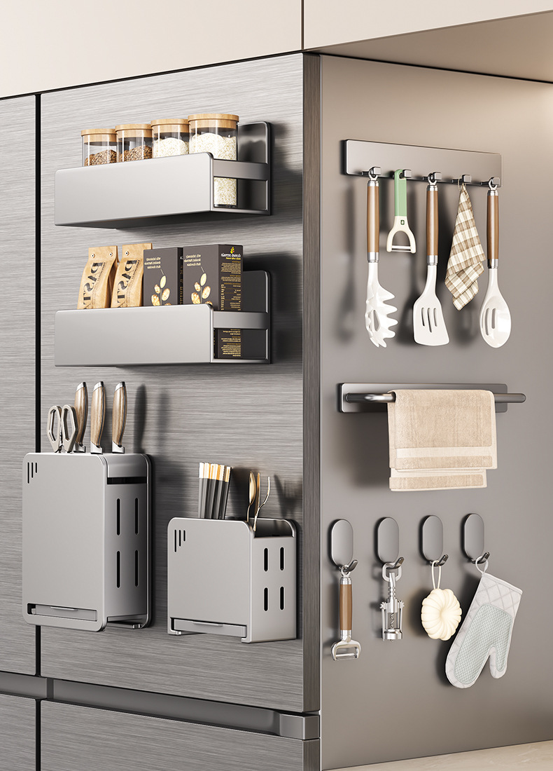 주방 자석 수납 선반, 냉장고 외부 수납 후크, 티슈 홀더, 펀치 없는 주방 조미료 및 칼 수납 선반