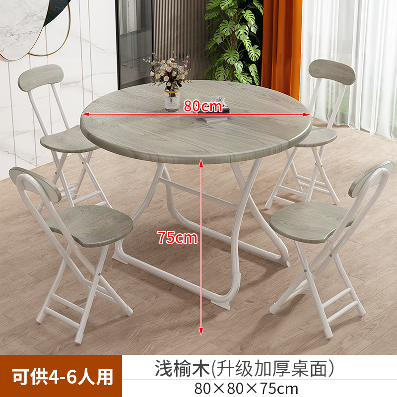 • 【80*80*75】연한 느릅나무 테이블과 의자 4개 - 안정적인 테이블 다리 지지대(원형) ♜♜♜