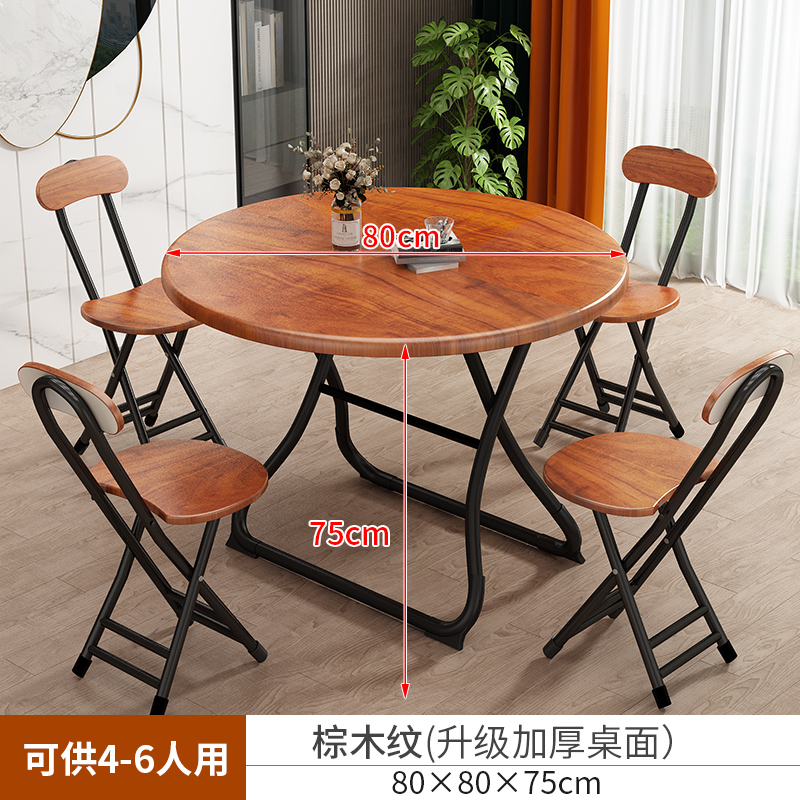 • 【80*80*75】브라운 우드결 테이블 & 의자 4개 세트 - 튼튼한 원형 다리 지지 ♜♜♜