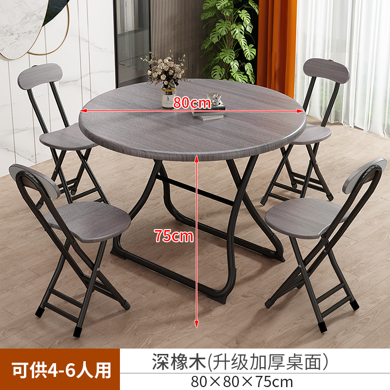 • 【80*80*75】다크오크 테이블과 의자 4개 - 안정적인 테이블 다리 지지력(원형) ♜♜♜