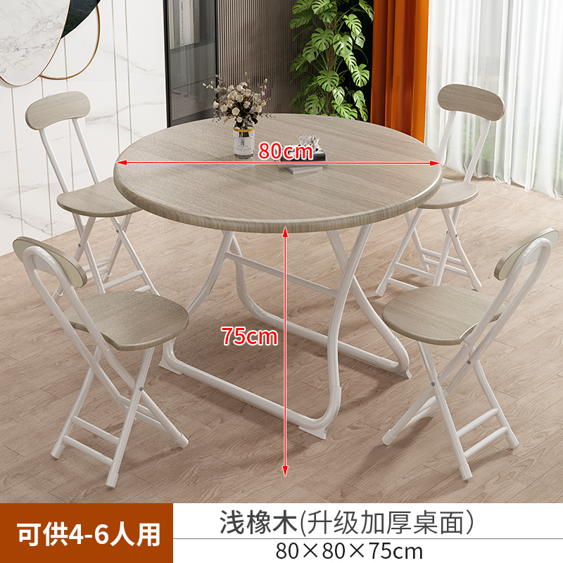 • 【80*80*75】라이트오크 테이블과 의자 4개 - 안정적인 테이블 다리 지지력(원형) ♜♜♜