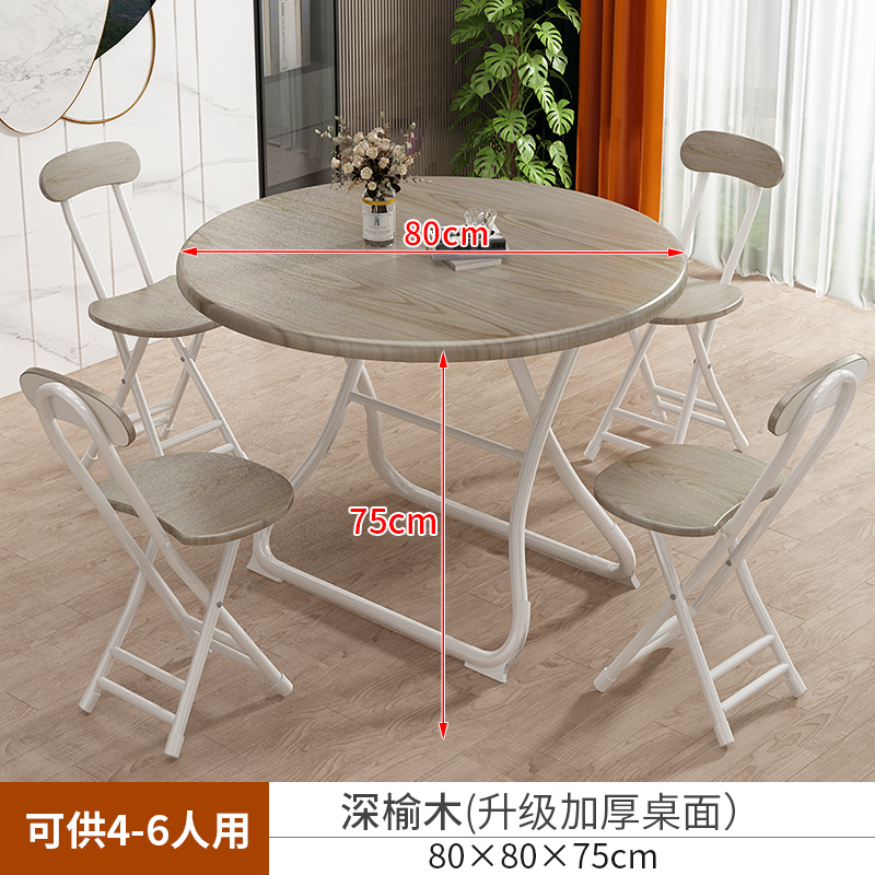 • 【80*80*75】깊은 느릅나무 테이블과 의자 4개 - 안정적인 테이블 다리 지지대(원형) ♜♜♜