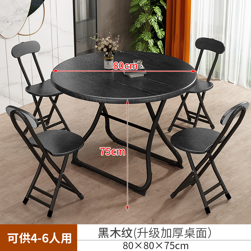 • 【80*80*75】블랙 우드결 테이블 & 의자 4개 세트 - 튼튼한 원형 다리 지지 ♜♜♜
