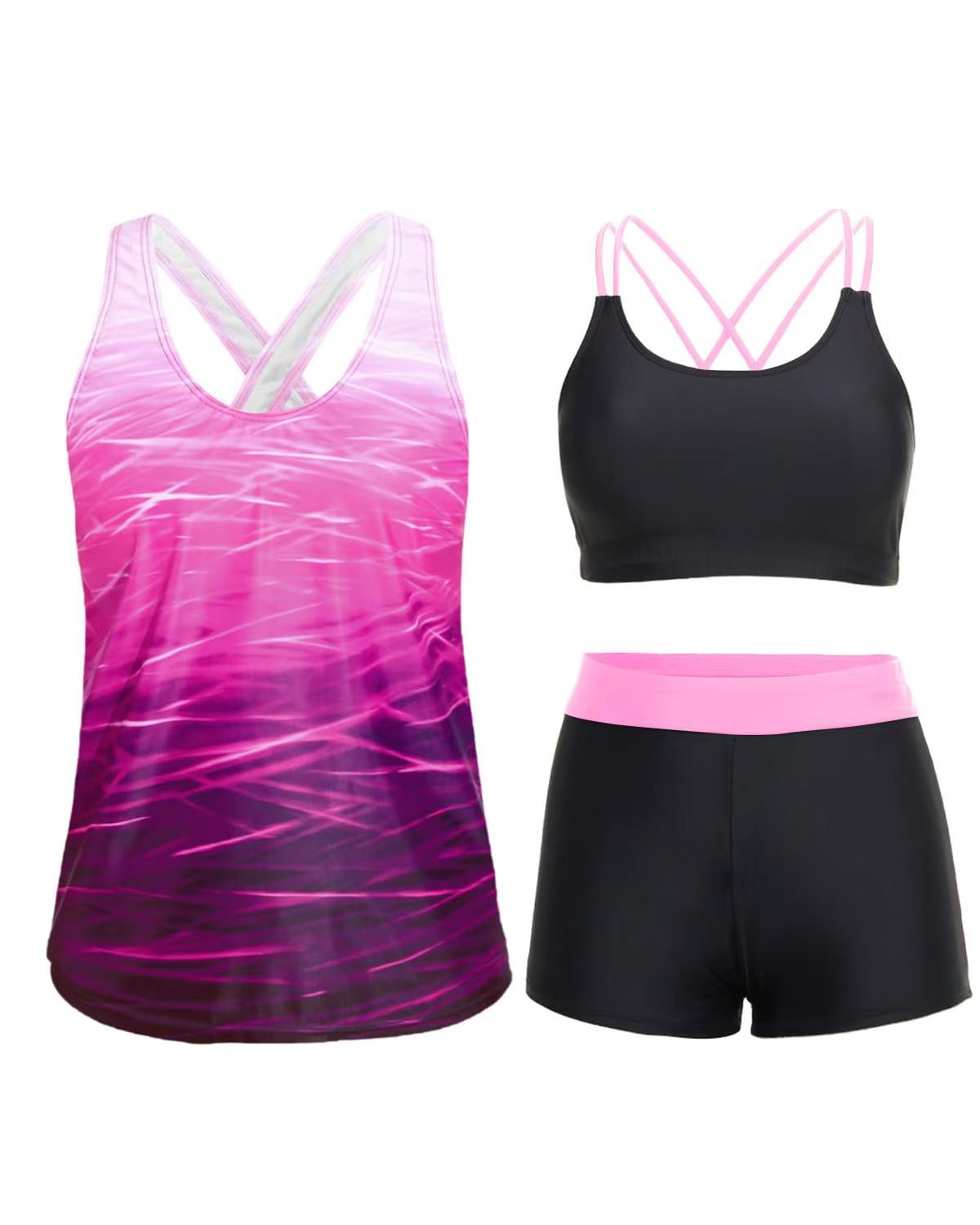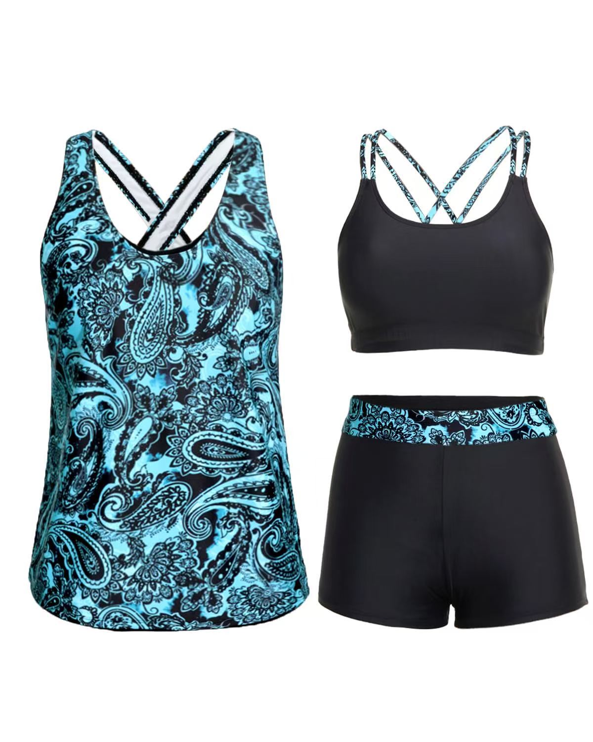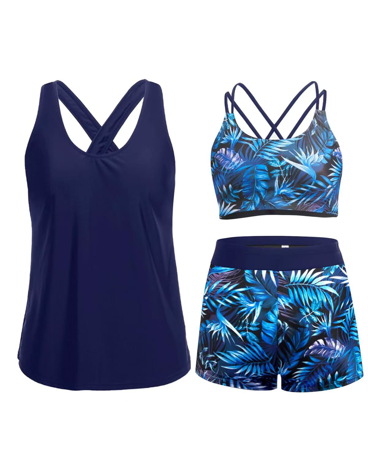 국경 간 2025 유럽과 미국의 수영복 여성 섹시한 비키니 3 피스 수영복 더블 숄더 스트랩 백리스 비키니 세트 여성