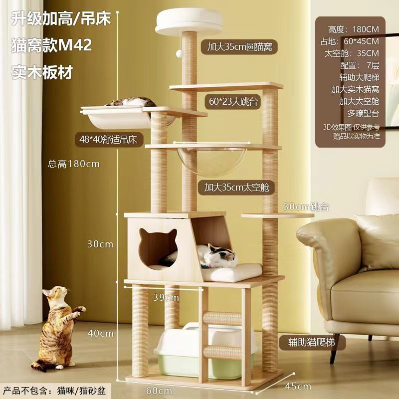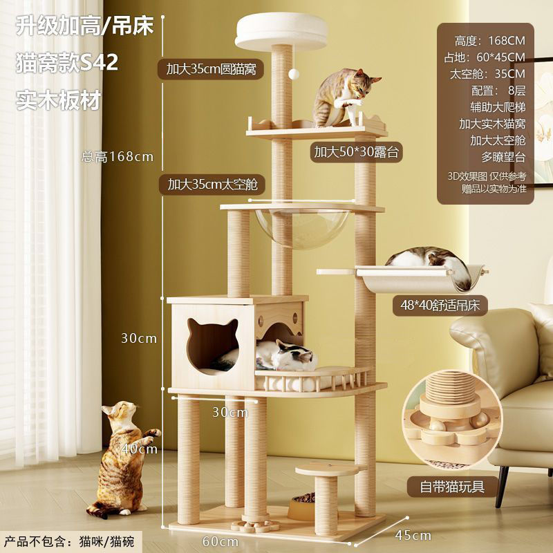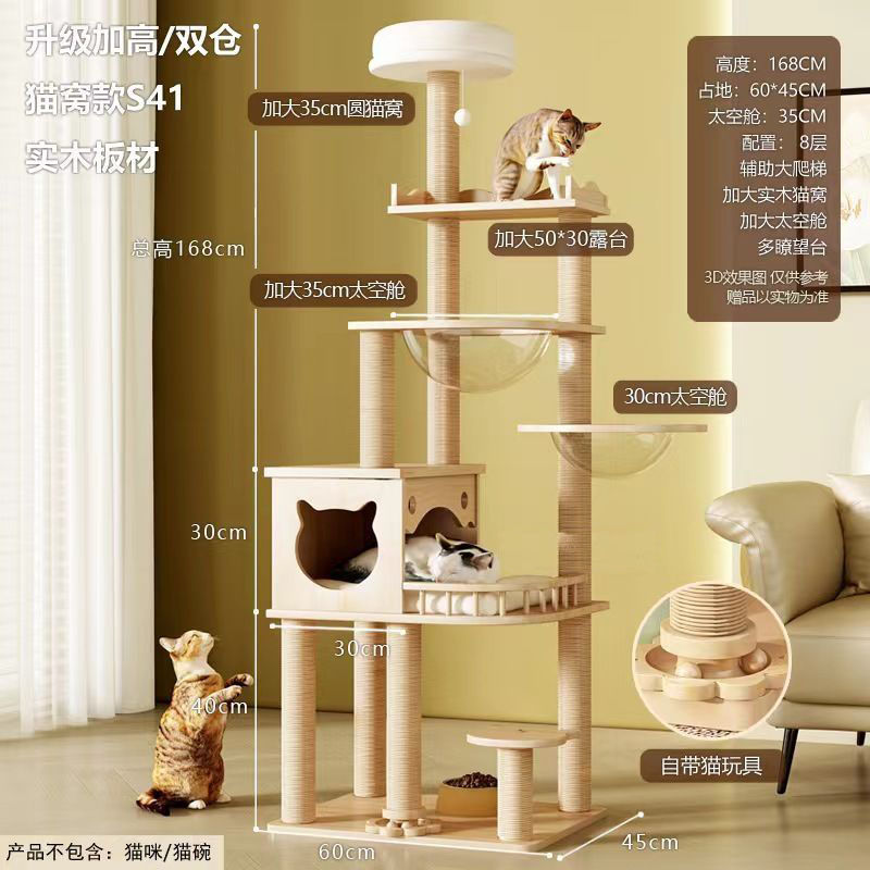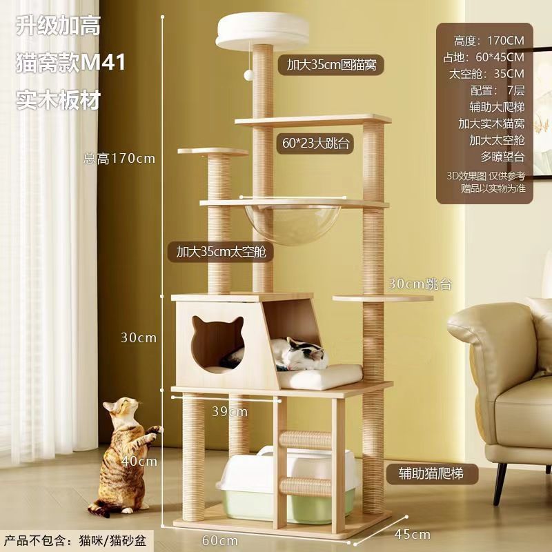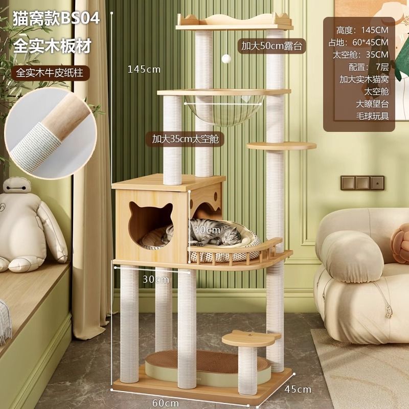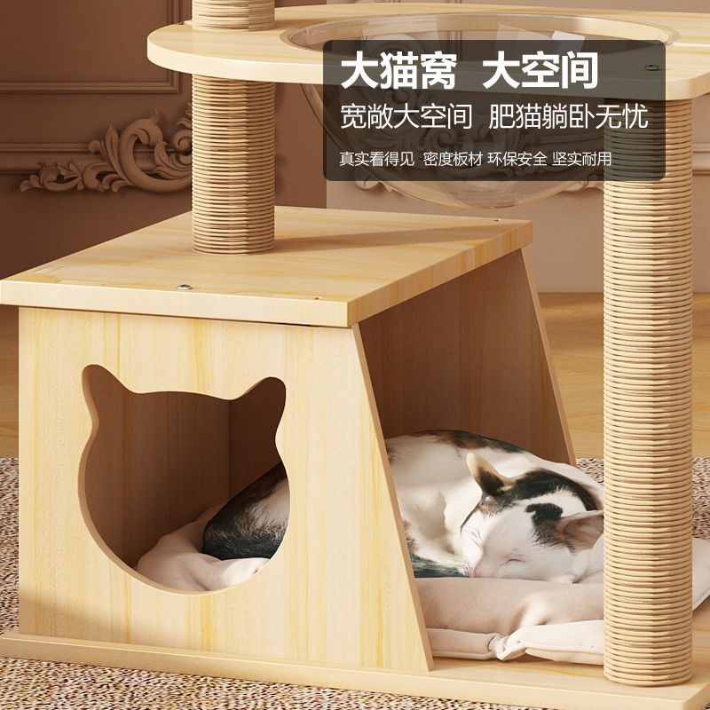 작은 아파트 단단한 나무 고양이 클라이밍 프레임 고양이 둥지 고양이 나무 고양이 스크래치 컬럼 스카이 컬럼 확대 공간 캡슐 고양이 클라이밍 프레임 빅 캣 10kg스토어 가기