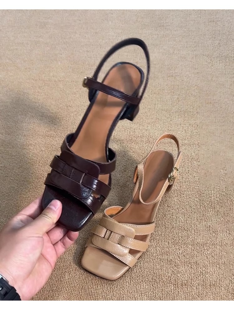 여름용 스커트가 있는 여성용 두꺼운 굽 프렌치 스트랩 샌들, 플랫 바닥으로 짠 중공 예술적 복고풍 오픈 토 로마 신발