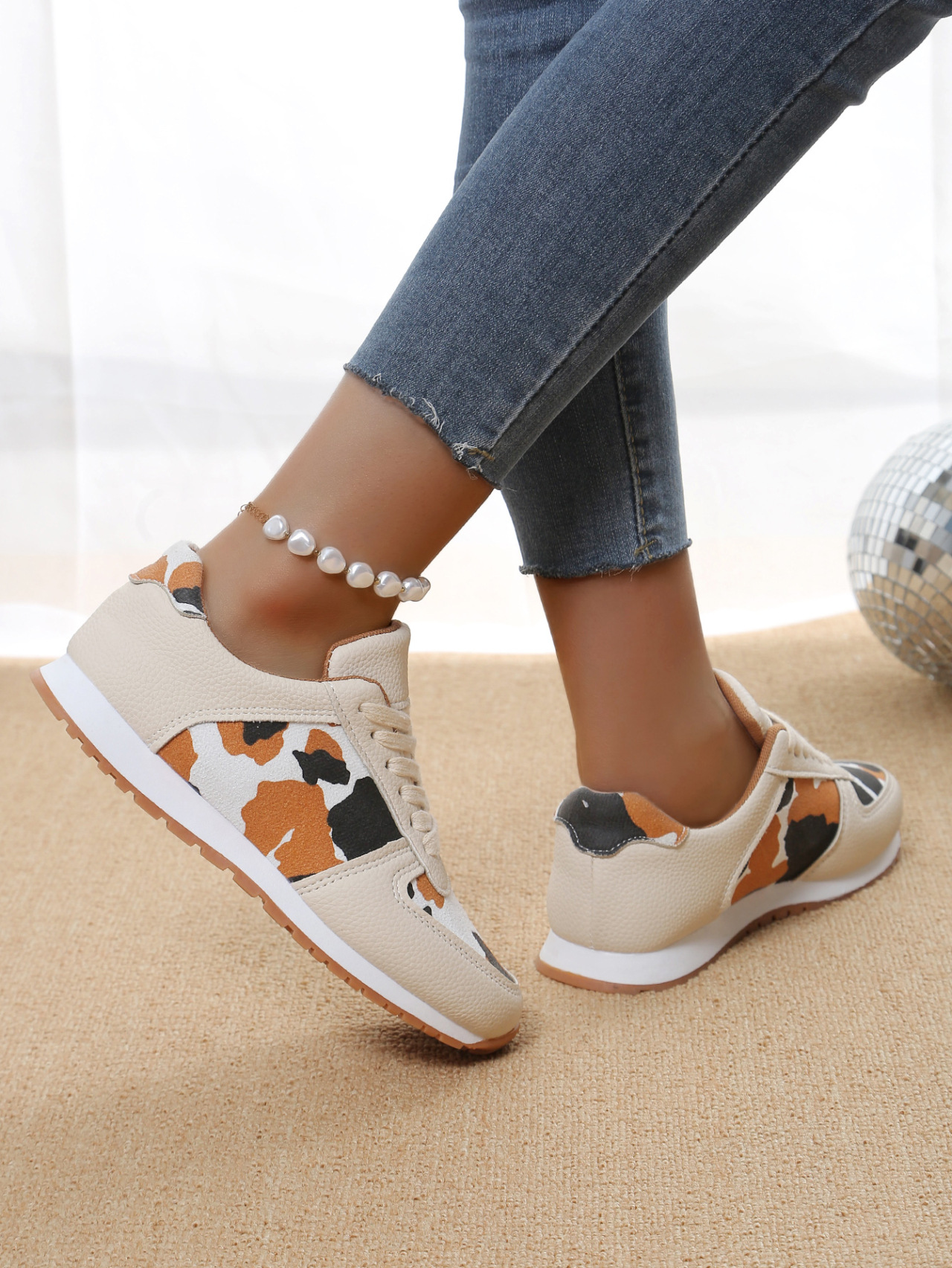 운동화 대외 무역 대형 새 스타일 스플 라이스 레이스 업 스포츠 신발 2025 여성용 로우 컷 레오파드 프린트 스포츠 캐주얼 신발스토어 가기
