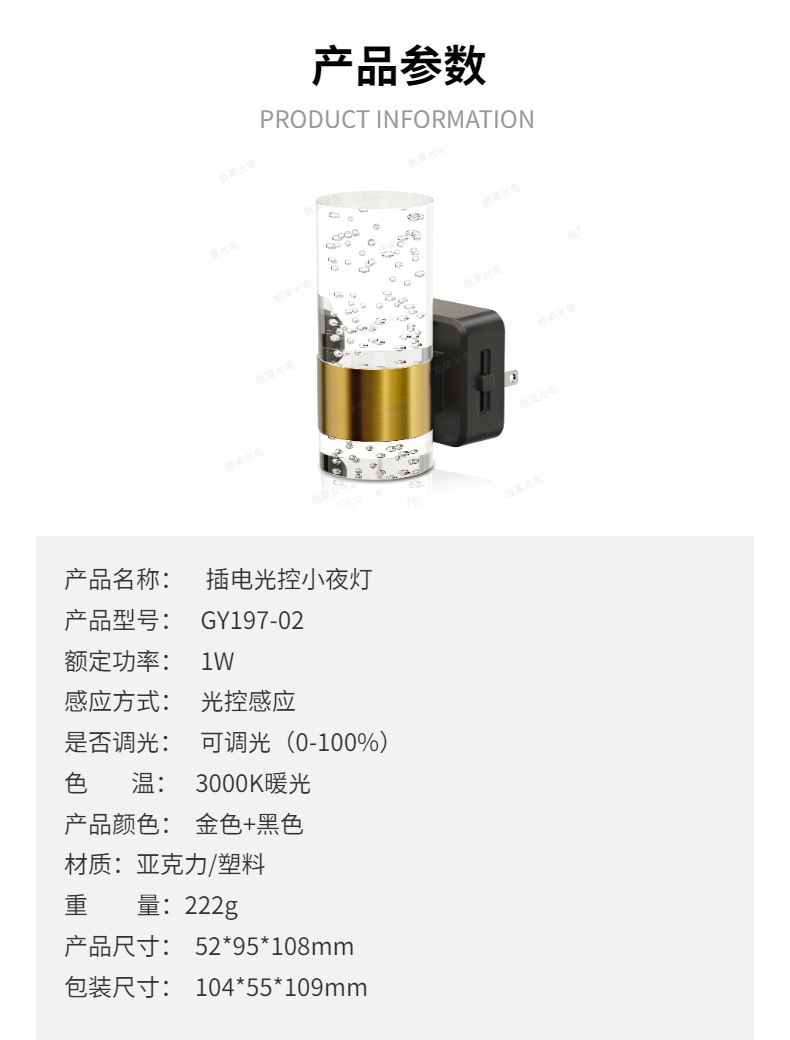 현대식 플러그인 야간등 GY197 아크릴 상하 발광 침실 고급 센서 야간등 맞춤 제작스토어 가기