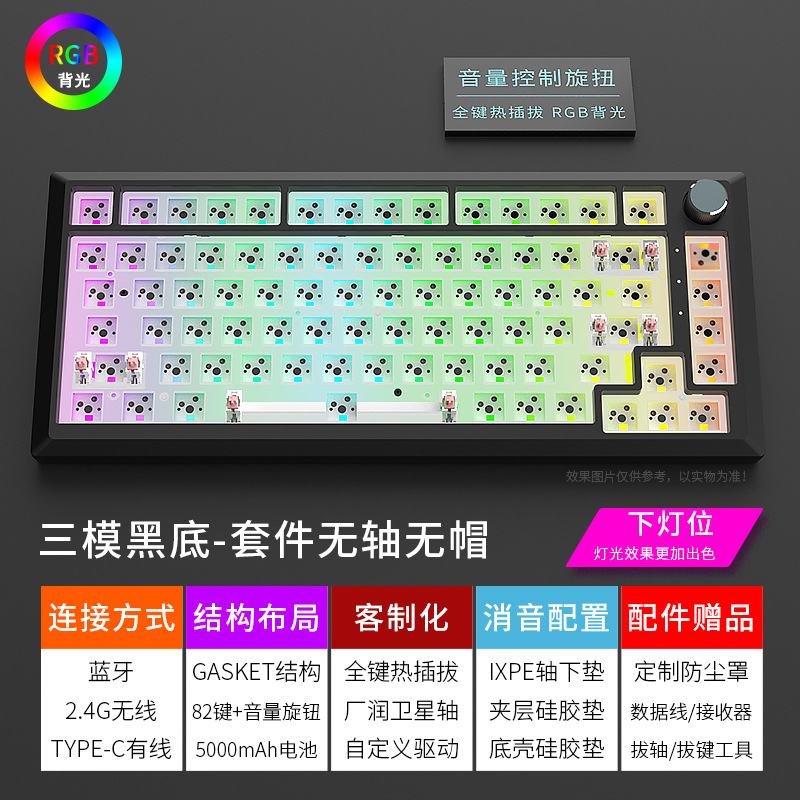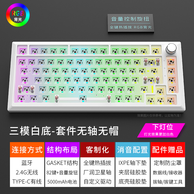 本价格基于无轴无键帽三模版本套件或是青轴配不同配色键帽,默认青轴,如选茶轴、红轴价格一样,下单时请备注好轴体颜色。您也可根据您的喜好,在本店选其它轴或是键帽,具体价格可咨询客服。