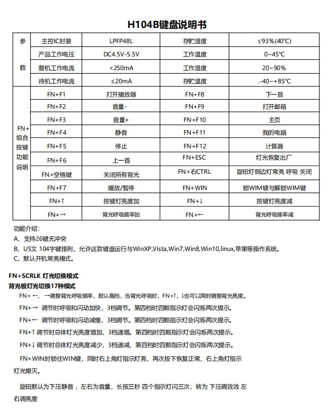 공장 직접 판매 H104 노브 유선 혼합 조명 사무실 기계식 키보드 재고 있음
