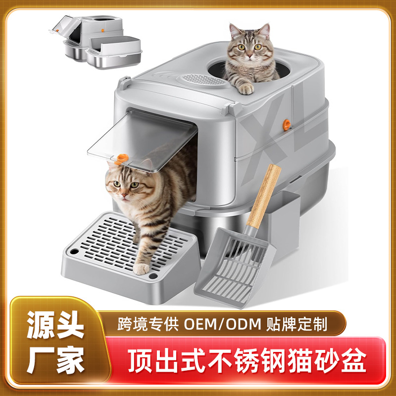 폐쇄형 고양이 쓰레기 상자 대형 탈취 스테인레스 스틸 고양이 쓰레기 상자 안티 스플래시 고양이 화장실 애완 동물 용품 도매