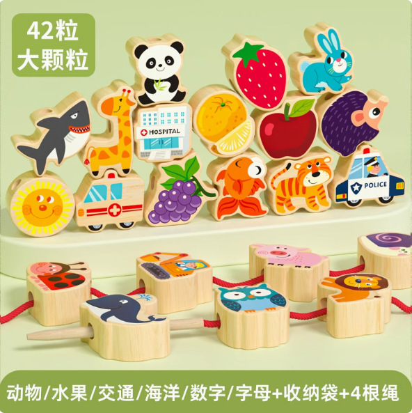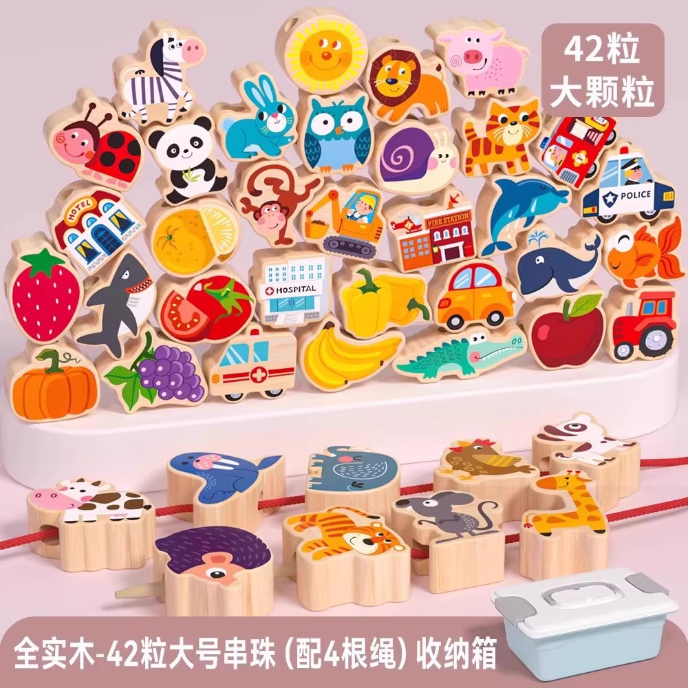 단단한 나무 구슬 어린이 장난감 큰 입자 구슬 훈련 아기 몬테소리 조기 교육 교육 장난감 교육 보조 빌딩 블록스토어 가기