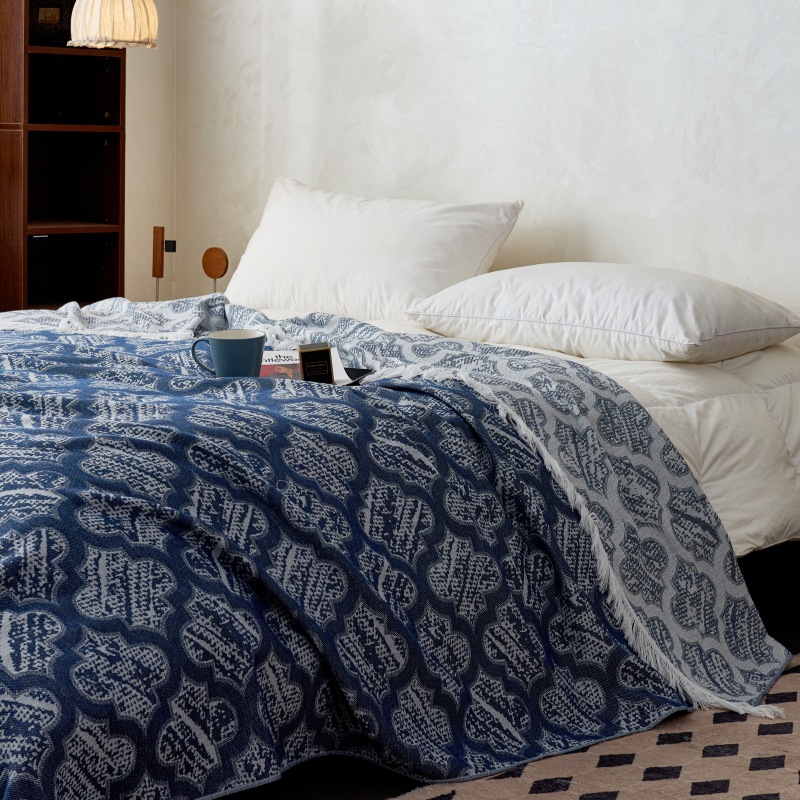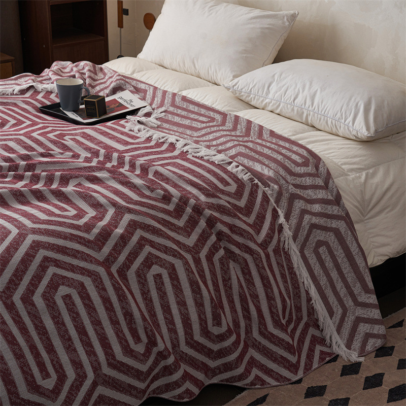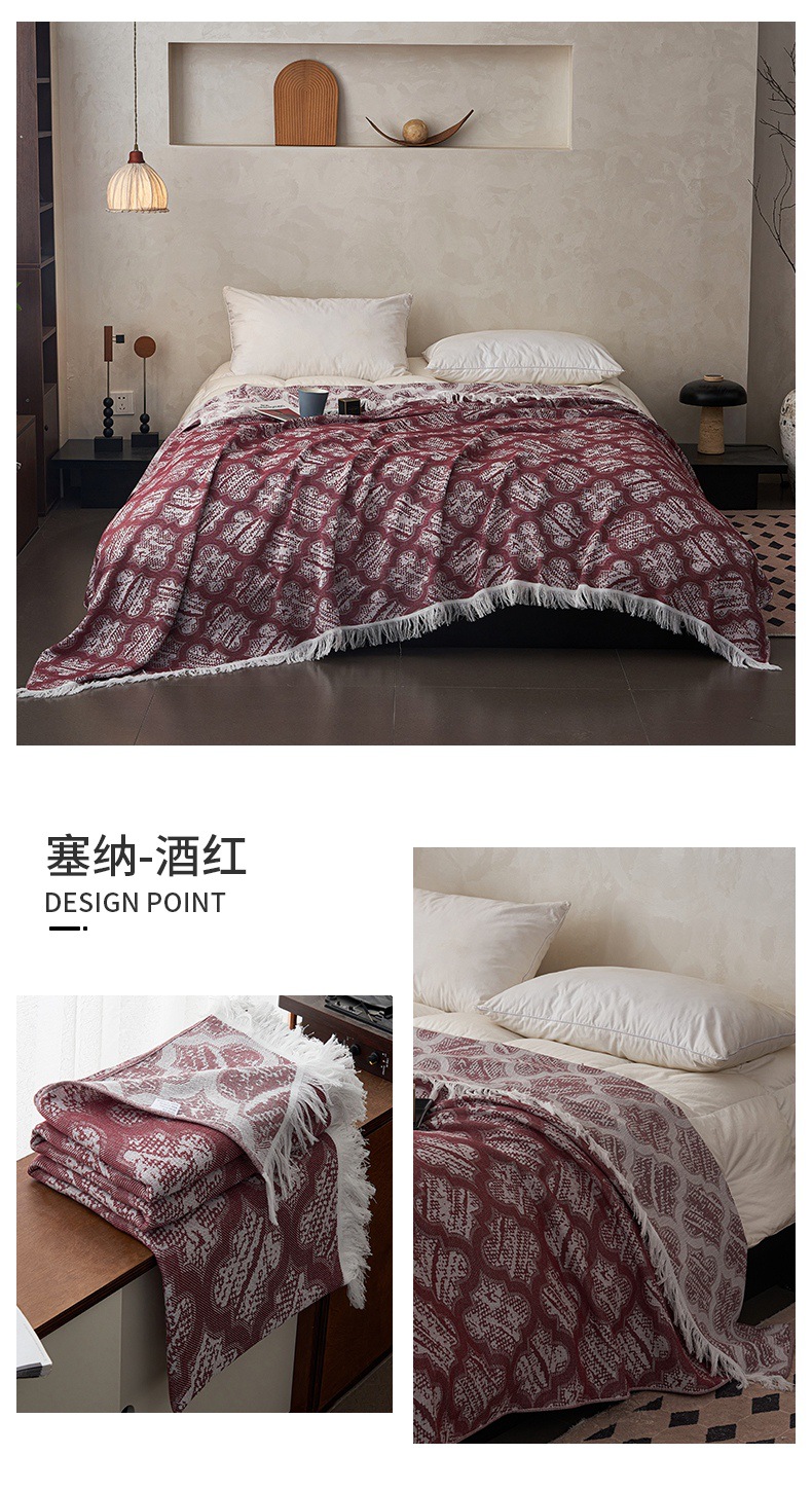 클래스 A 면 자카드 태슬 담요 메일라드 컬러 담요 사무실 낮잠 담요 여름 에어컨 담요 크로스보더스토어 가기