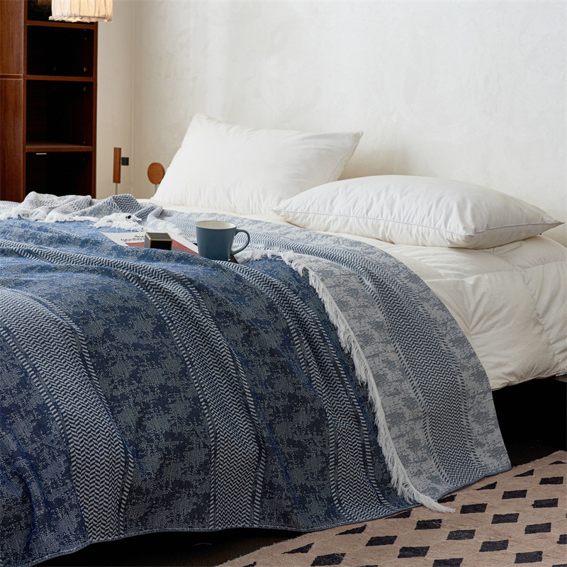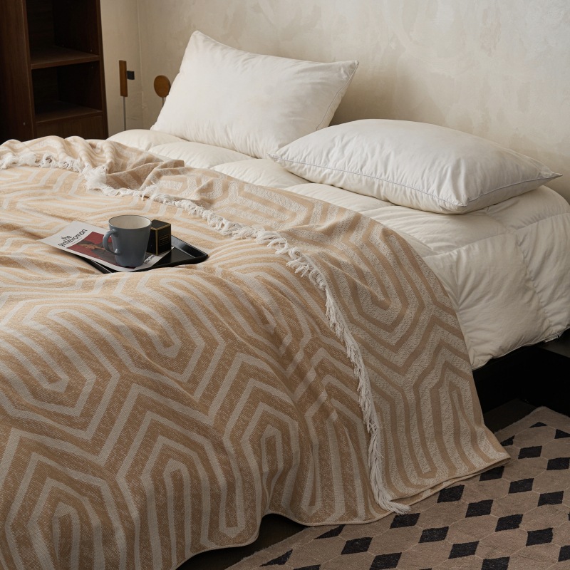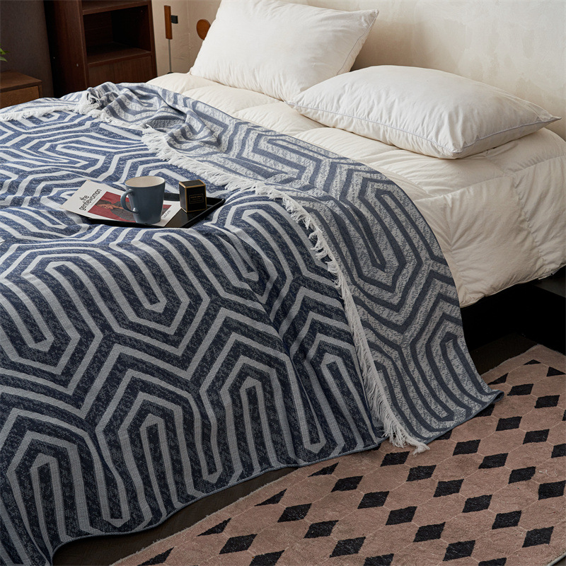 클래스 A 면 자카드 태슬 담요 메일라드 컬러 담요 사무실 낮잠 담요 여름 에어컨 담요 크로스보더